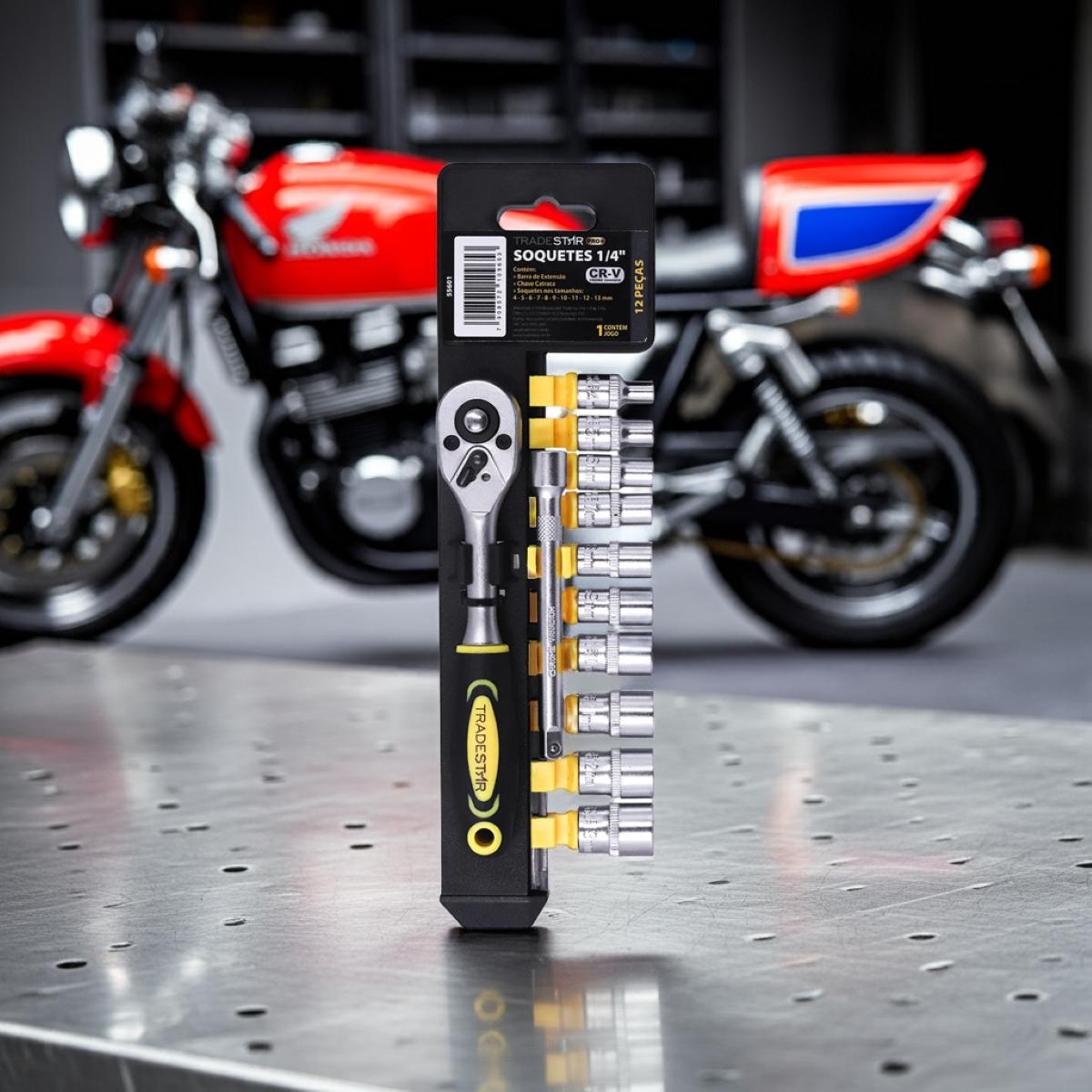 Jogo Chave e Soquetes 1/4'' 4-13 mm CR-V Pro Tradestar
