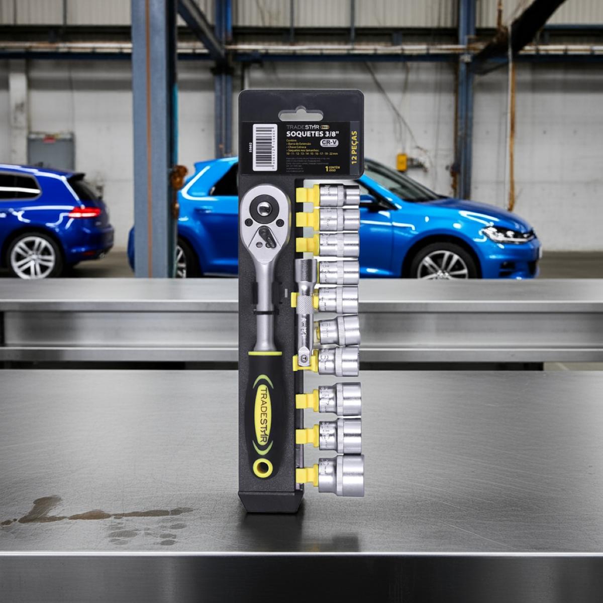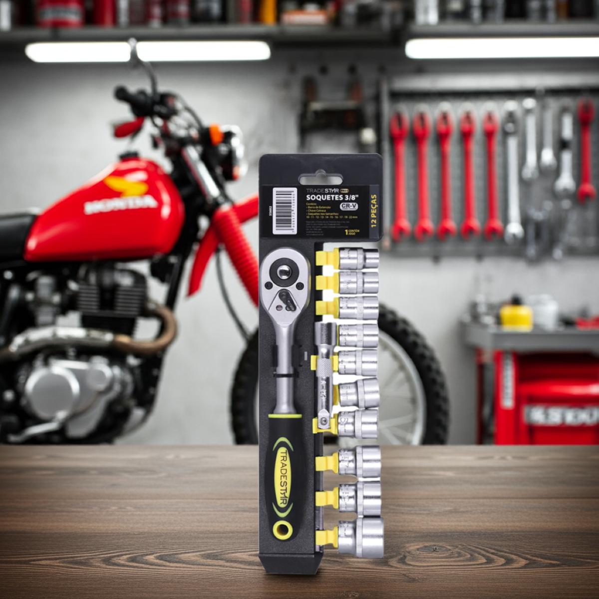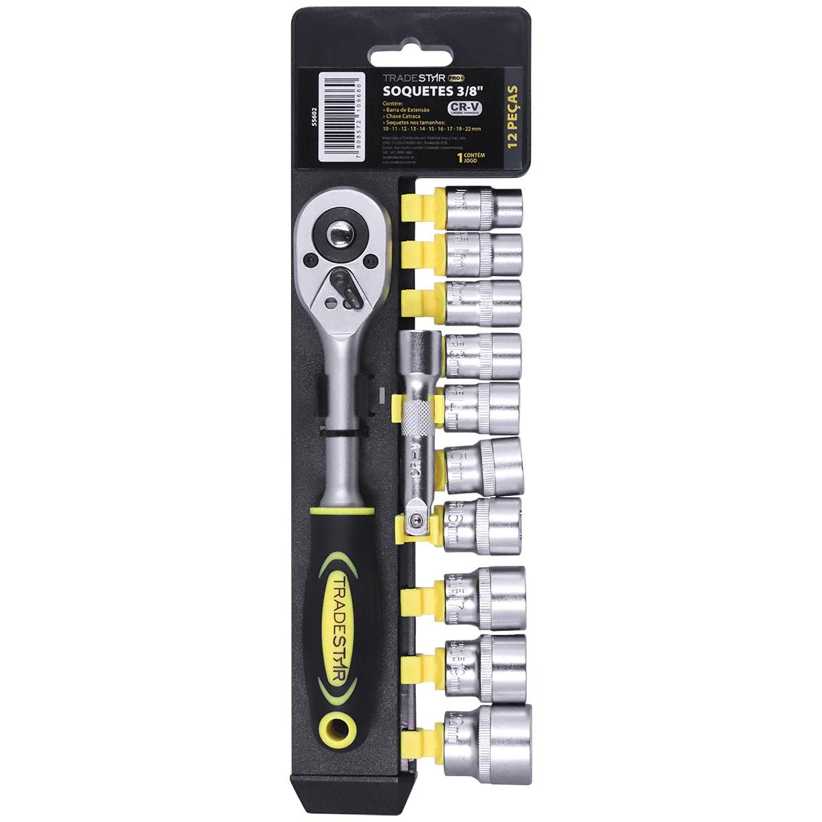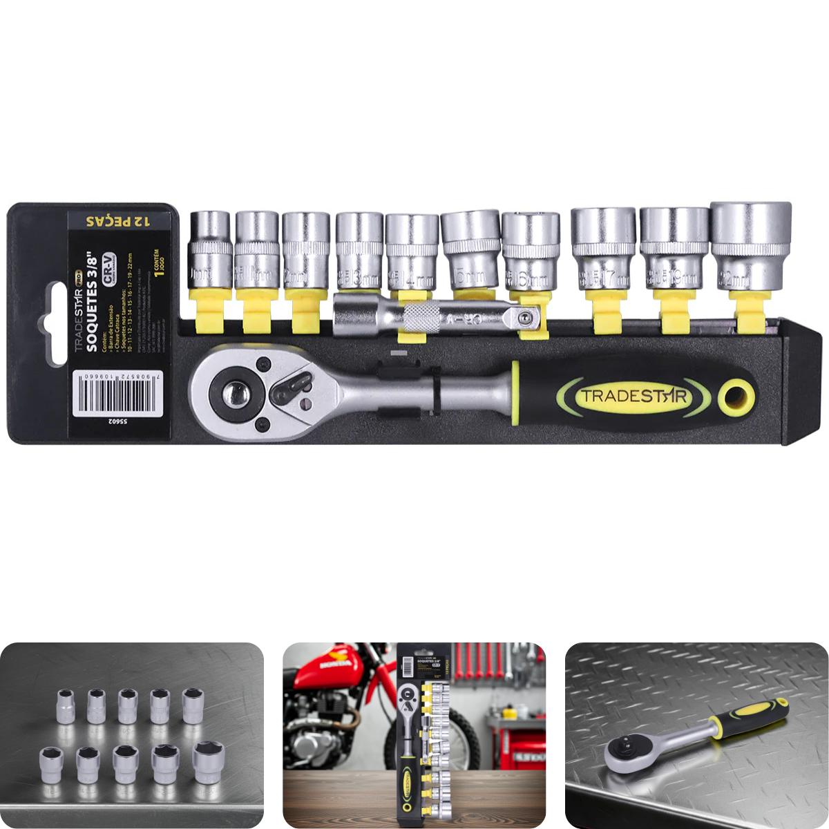 Kit Chave Catraca e Soquetes Tradestar Pro 3/8" 10 - 22 mm 12 Peças Cromo Vanádio