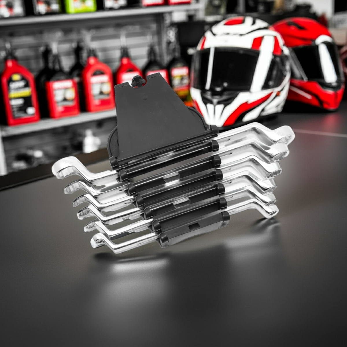 Este conjunto inclui 6 chaves de medidas duplas: 6x7 mm, 8x9 mm, 10x11 mm, 12x13 mm, 14x15 mm e 16x17 mm. Com esse intervalo abrangente, o kit garante versatilidade para trabalhar em diferentes tipos de porcas e parafusos sextavados.