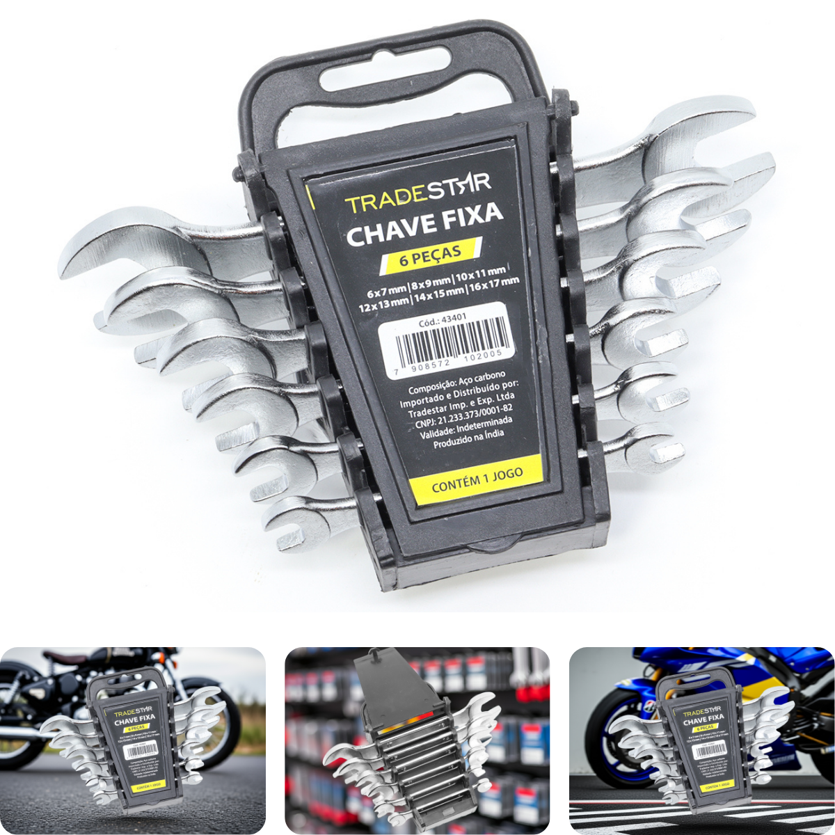 Kit Chave Fixa Tradestar 6 mm - 17 mm 6 Peças Aço Carbono