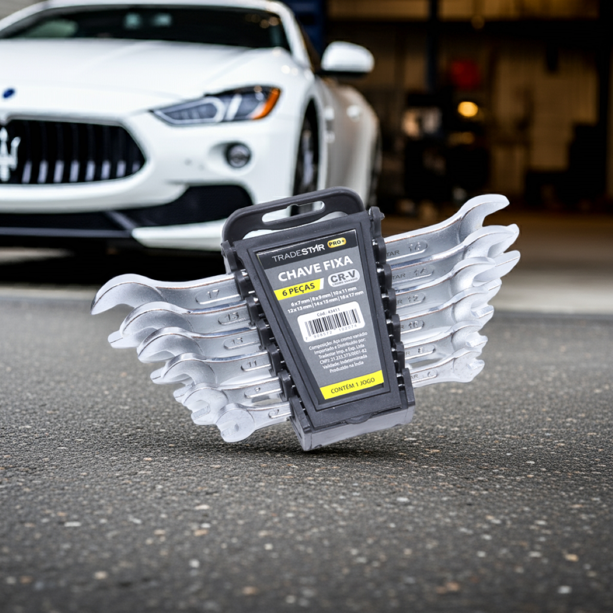 O Kit de Chaves Boca Fixa Tradestar 6 Peças é a ferramenta ideal para quem busca versatilidade, durabilidade e precisão no aperto ou desaperto de porcas e parafusos sextavados. Fabricadas em Cromo Vanádio de alta resistência, estas chaves foram desenvolvidas para profissionais e entusiastas do faça-você-mesmo, garantindo desempenho confiável em uma ampla variedade de aplicações.