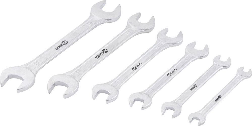 Conteúdo da embalagem 1 Jogo de chaves fixas composto por um estojo plástico com 6 peças, sendo: 6 mm x 7mm, 8mm x 9 mm, 10 mm x 11 mm, 12 mm x 13 mm, 14 mm x 15 mm e 16 mm x 17 mm Aplicações e dicas de uso Indicado para apertar e soltar porcas e parafusos sextavados. Nunca utilizar prolongadores sobre as chaves, pois isso aumentará o torque aplicado e diminuirá a vida útil da ferramenta. Uso leve. Destaques e diferenciais Corpo das chaves com acabamento cromado fosco, proporcionando maior resistência contra oxidação/corrosão. Possui pontas estreitas que possibilitam o uso em locais de difícil acesso.