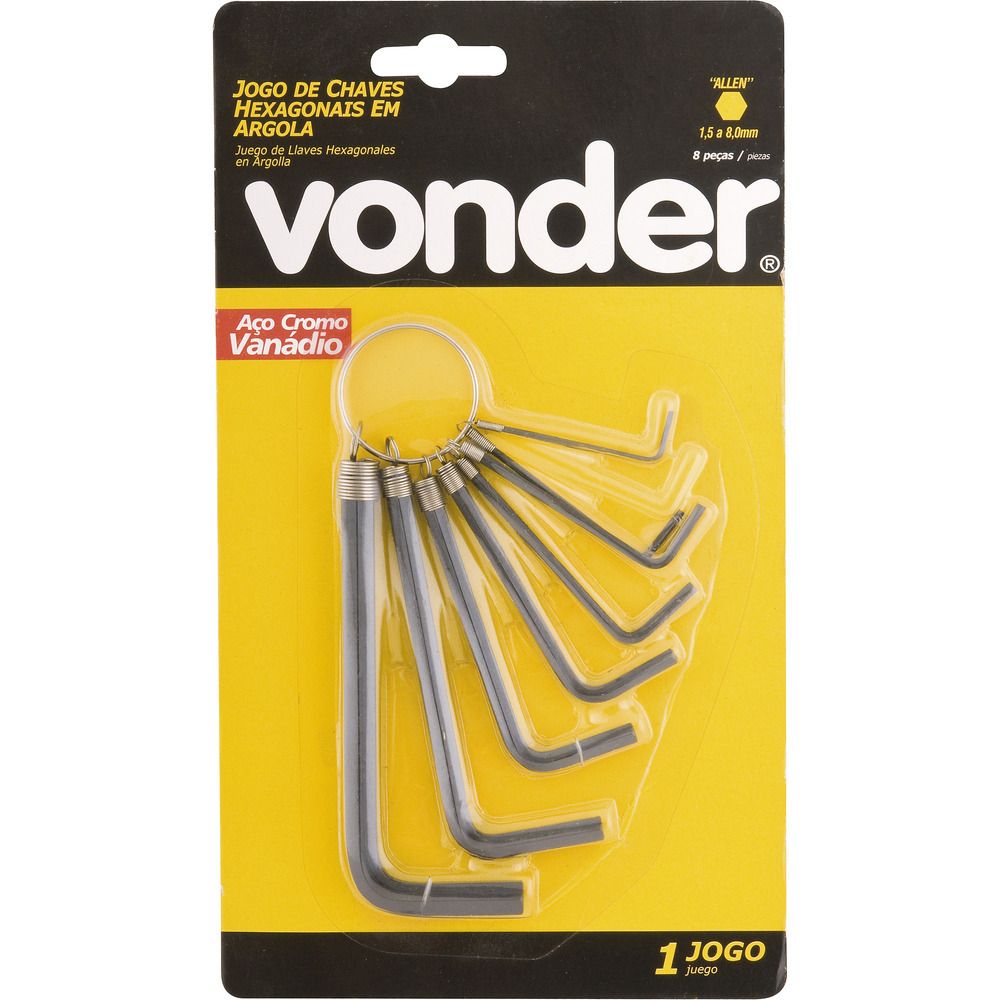 Jogo Chave Hexagonal Allen 1,5-8,0mm Tipo L Curta Vonder