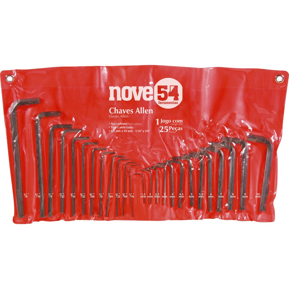 Conteúdo da embalagem 1 Jogo de chaves allen, composto por uma bolsa plástica com 25 peças, sendo: 1,5 mm, 2 mm, 2,5 mm, 3 mm, 4 mm, 4,5 mm, 5 mm, 5,5 mm, 6 mm, 7 mm, 8 mm, 9 mm e 10 mm e em polegadas 1/16", 5/64", 3/32", 7/64", 1/8", 9/64", 5/32", 3/16", 7/32", 1/4", 5/16" e 3/8" Aplicações e dicas de uso Indicado para apertar e soltar parafusos com sextavado interno Destaques e diferenciais Tem em sua composição chaves em milímetros e polegadas, proporcionando uma gama maior de trabalhos