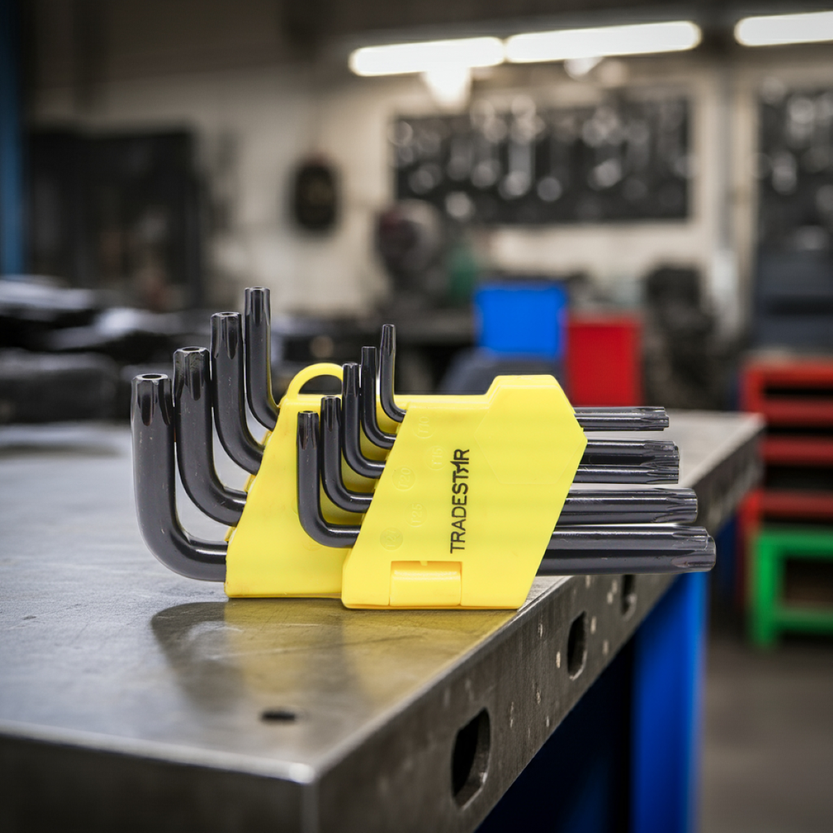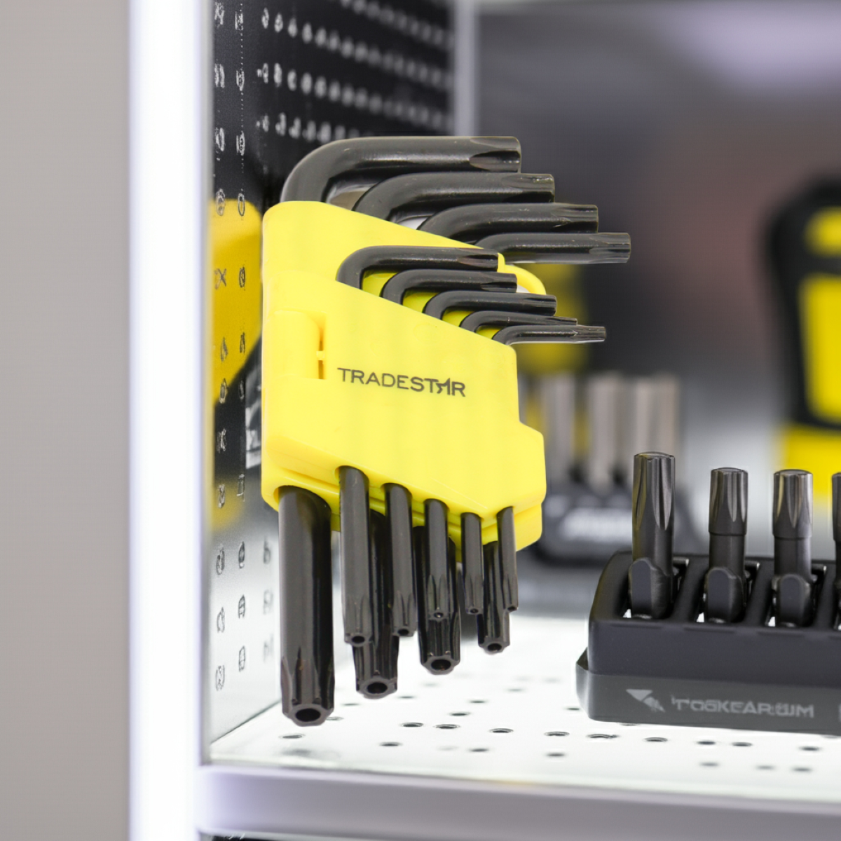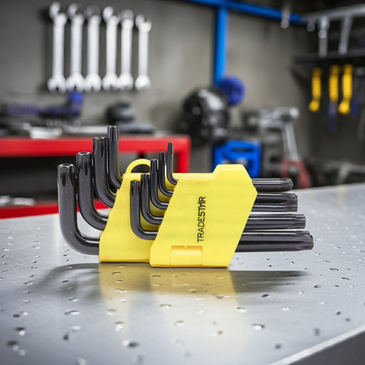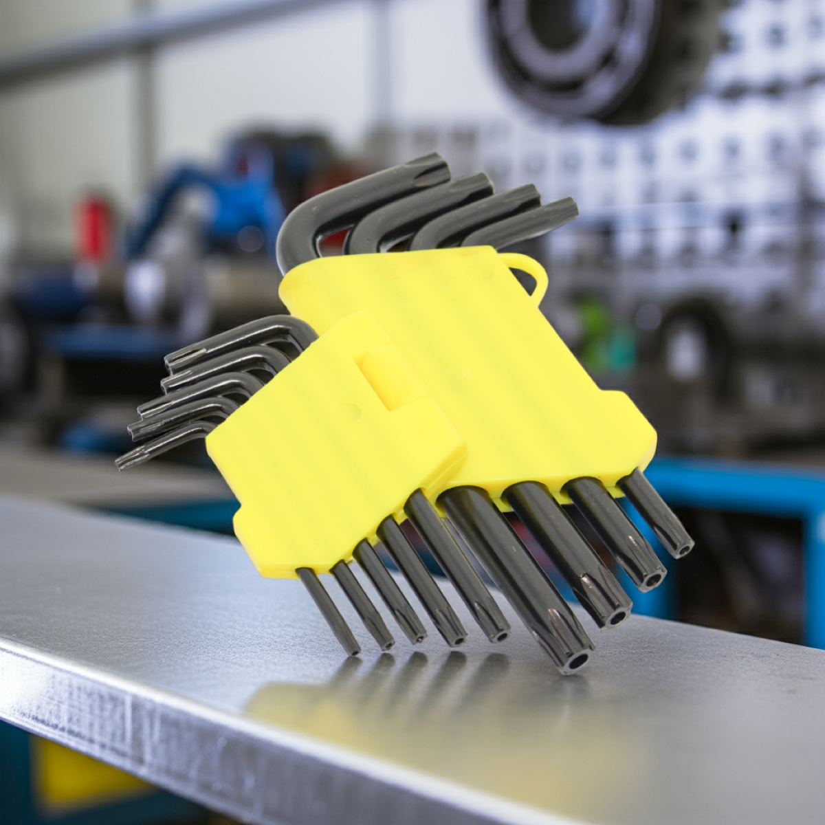 Composto por 9 peças nos tamanhos T10, T15, T20, T25, T27, T30, T40, T45 e T50, o kit cobre uma ampla gama de aplicações, sendo indispensável para quem trabalha com equipamentos automotivos, bicicletas, motocicletas, móveis, eletrodomésticos e outros sistemas que utilizam parafusos com encaixe Torx (hexalobular).