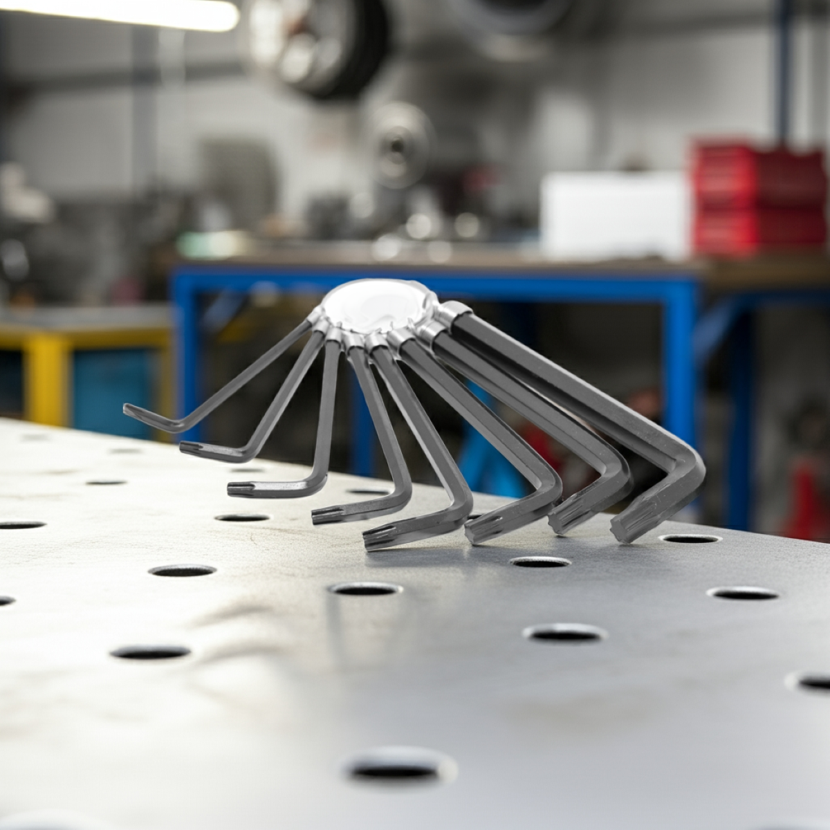 - Formato: Tipo L – maior torque e acesso em locais estreitos