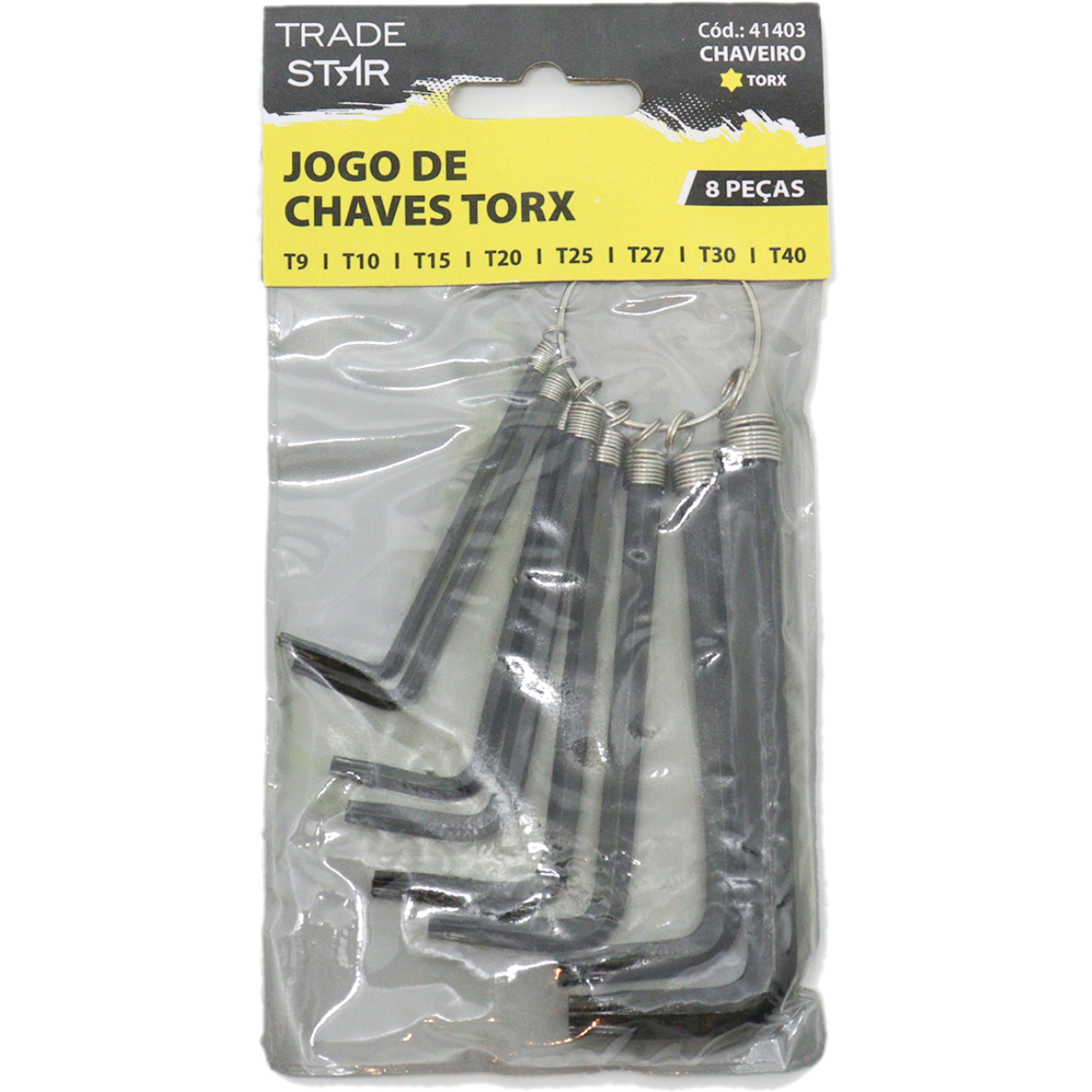 - 1 Jogo Chave Hexalobular Tradestar T9-T40 Chaveiro 8 Peças