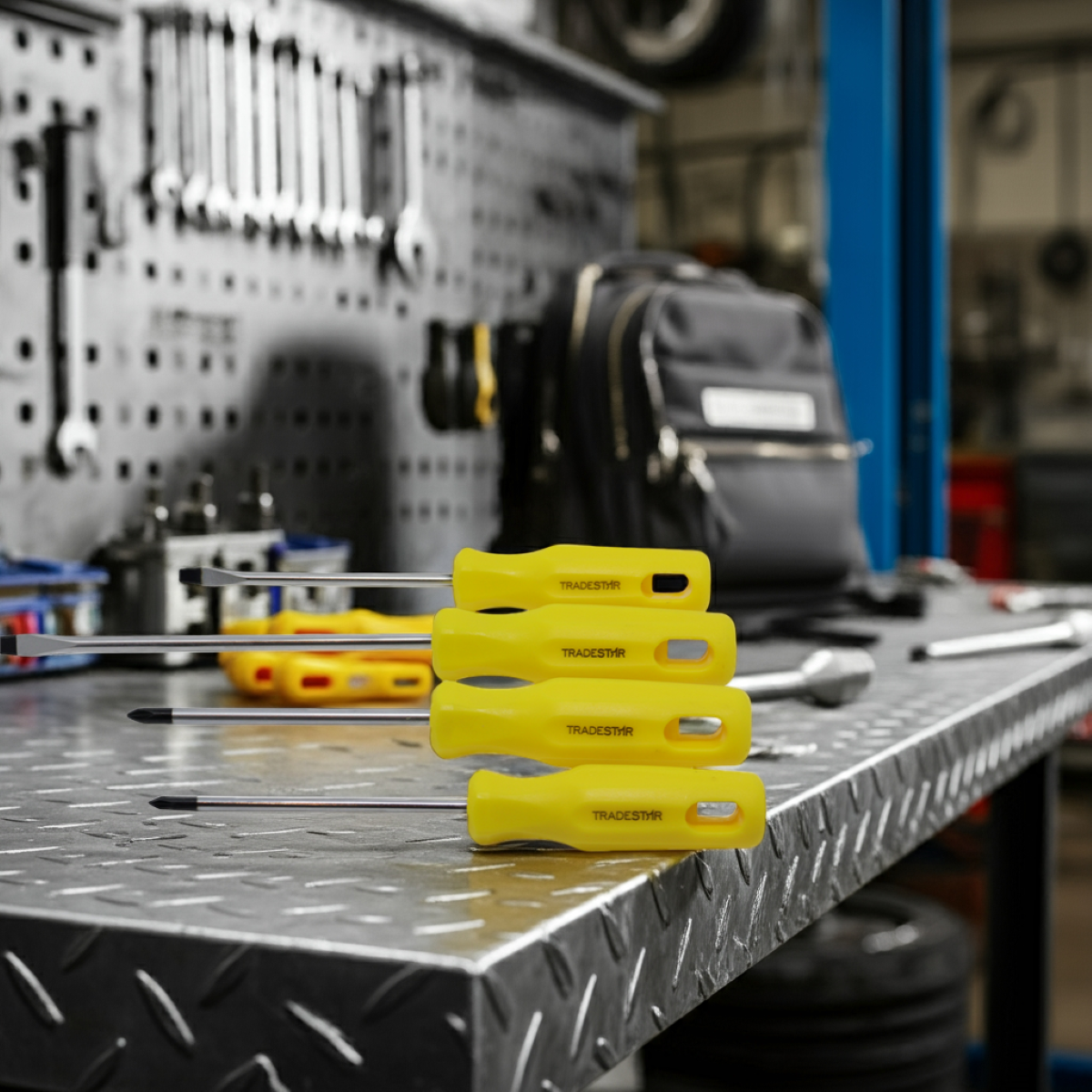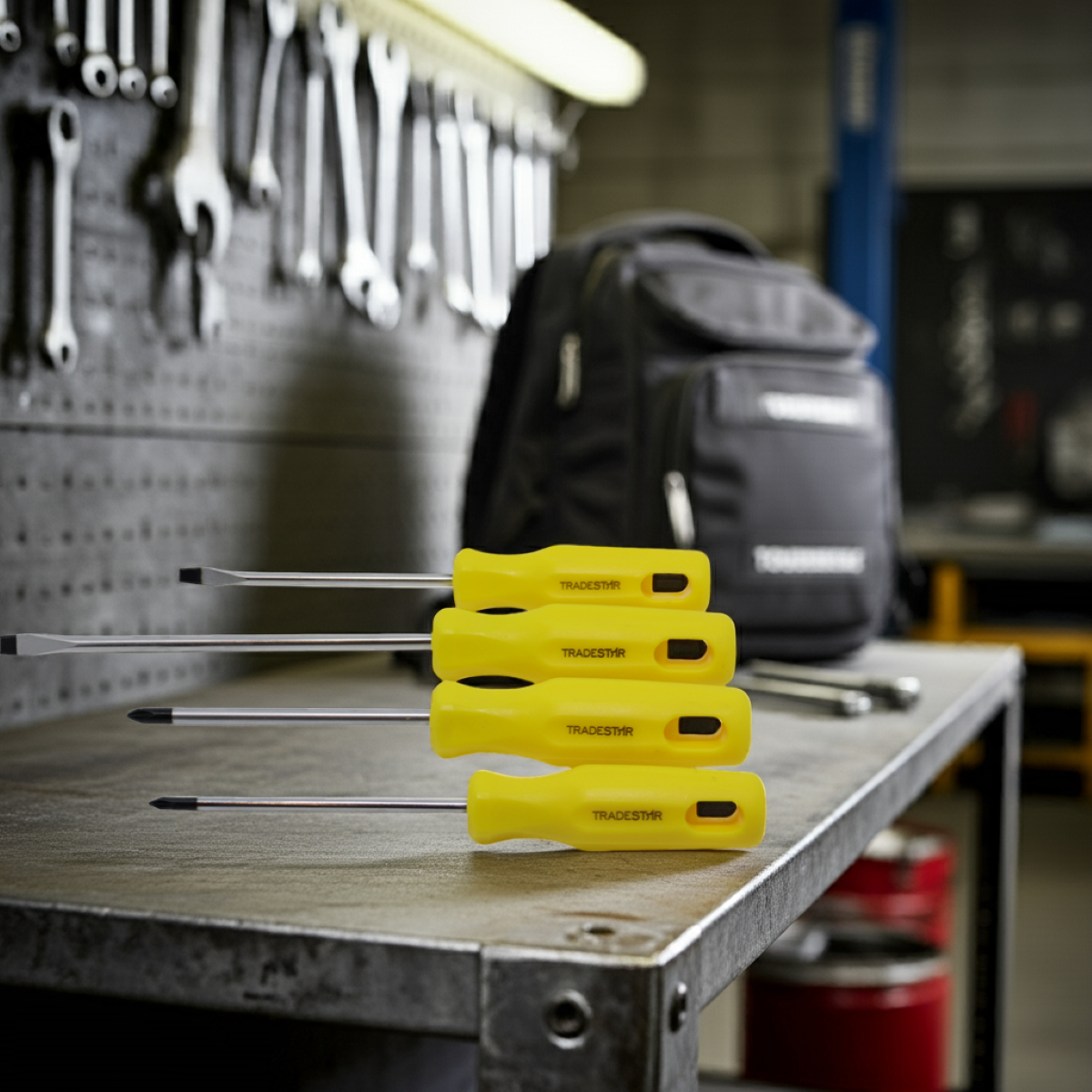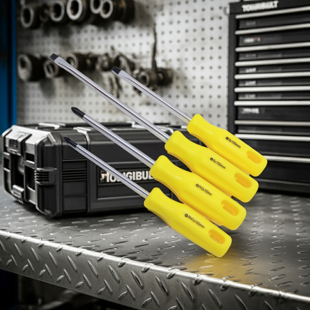 O Kit de Chaves Fenda e Phillips Tradestar 4 Peças é a solução prática e confiável para quem busca qualidade, durabilidade e versatilidade em ferramentas manuais. Produzido em aço Cromo-Vanádio de alta resistência, este conjunto foi desenvolvido para oferecer desempenho superior em diferentes situações, desde reparos simples até aplicações profissionais mais exigentes.