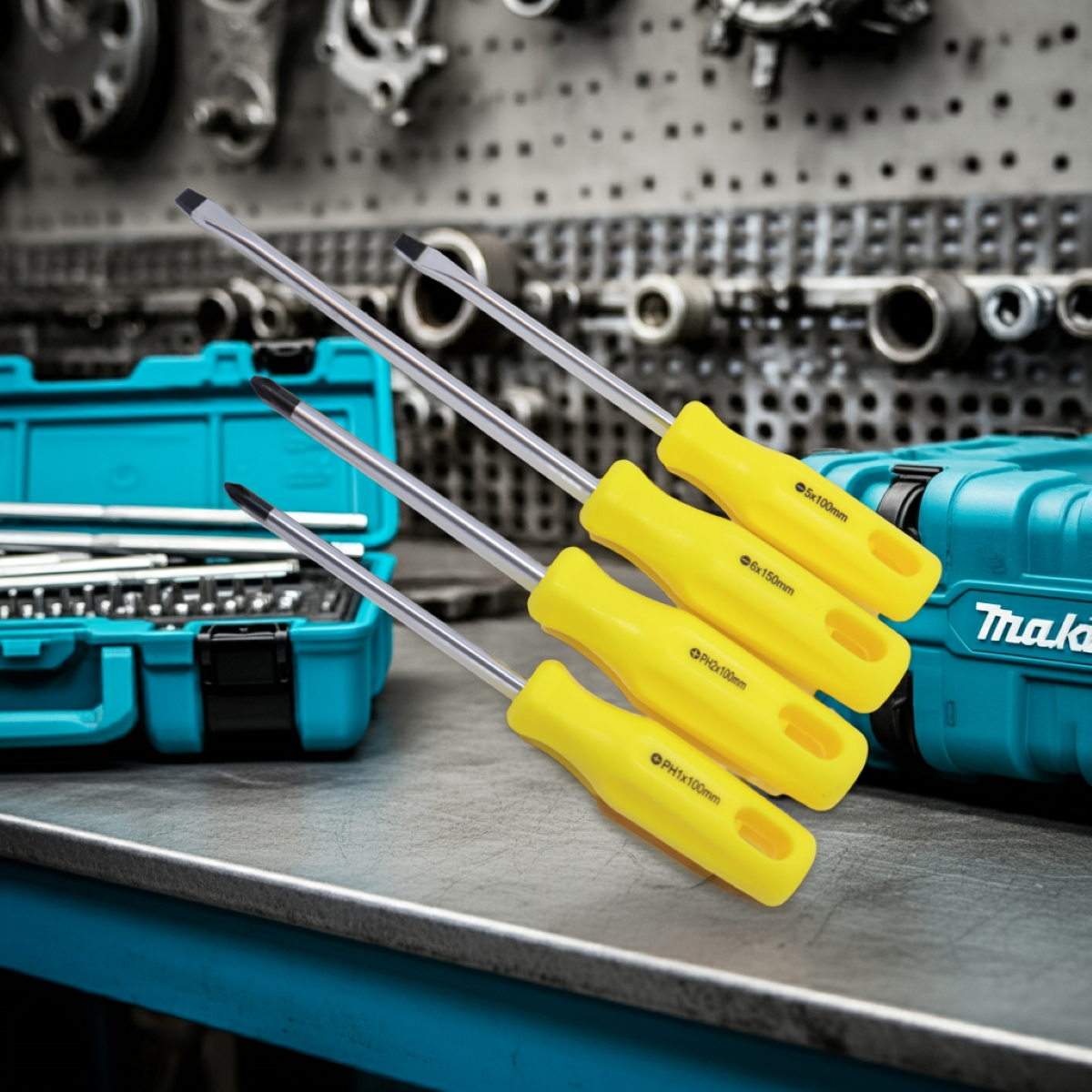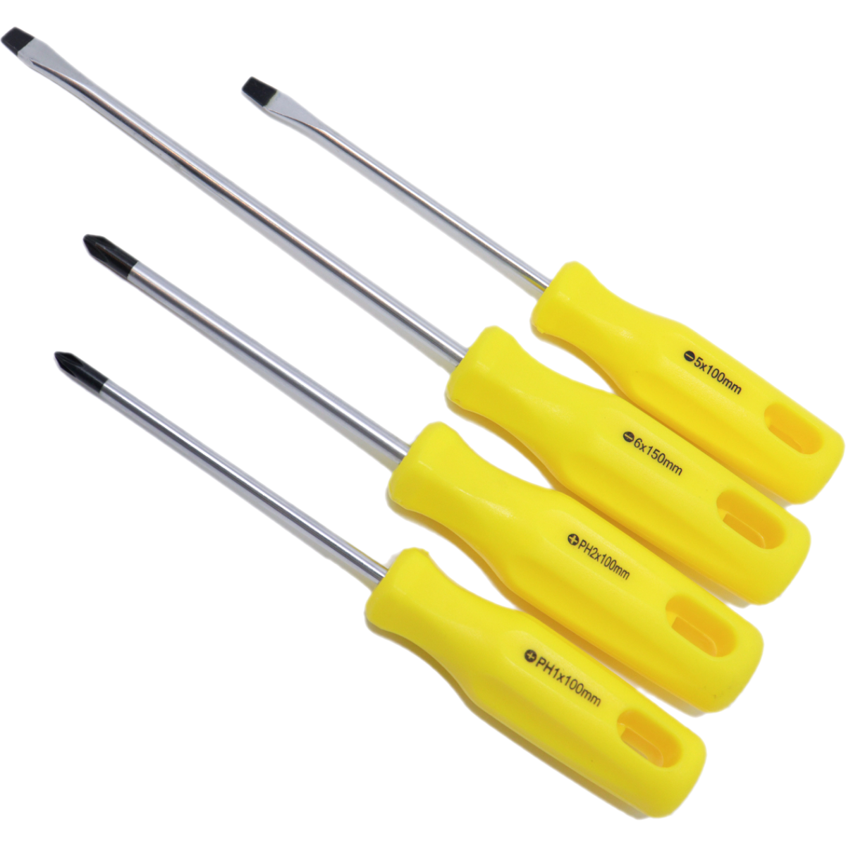 Composto por duas chaves de fenda e duas chaves Phillips, o kit atende a uma ampla gama de necessidades, tornando-se indispensável tanto para profissionais quanto para uso doméstico. A variedade de tamanhos garante que você sempre terá a chave certa à mão, seja para pequenos consertos em casa, manutenção de equipamentos ou trabalhos técnicos mais precisos.