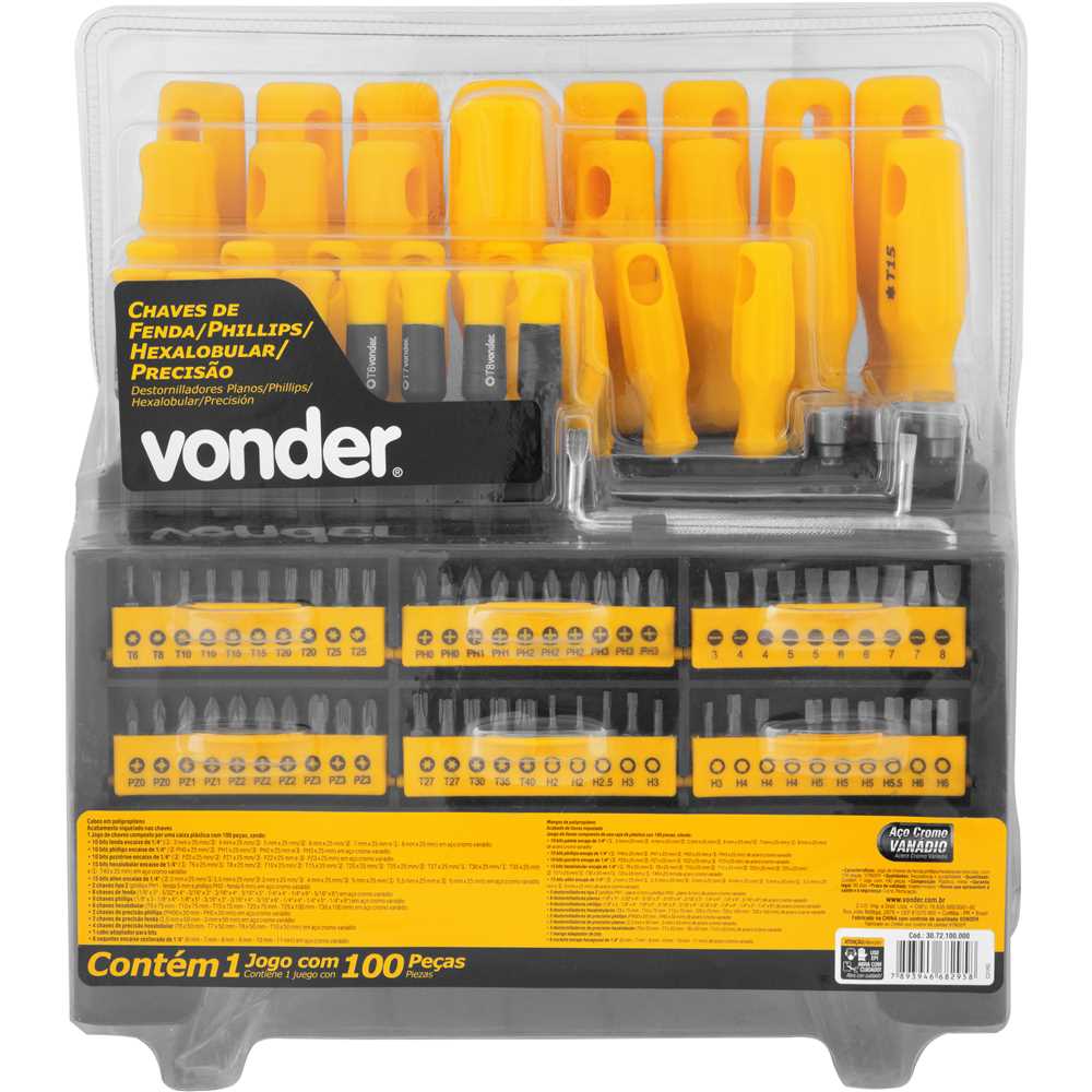 Jogo Chaves Fenda/Phillips/Hex/Precisão 100 Pçs Vonder