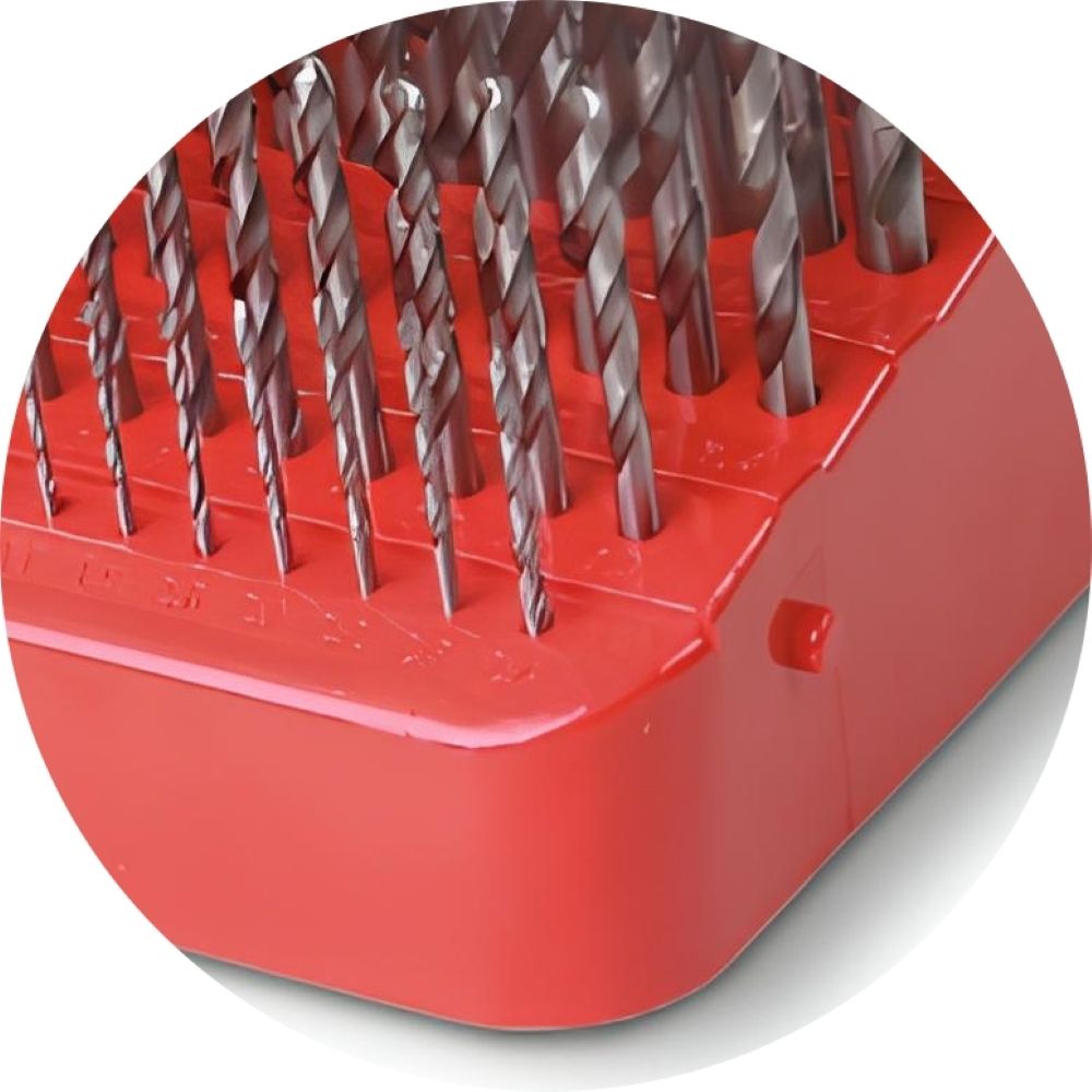 Brocas: 91 brocas cilíndricas com diâmetros de 1,00 a 10,00 mm.