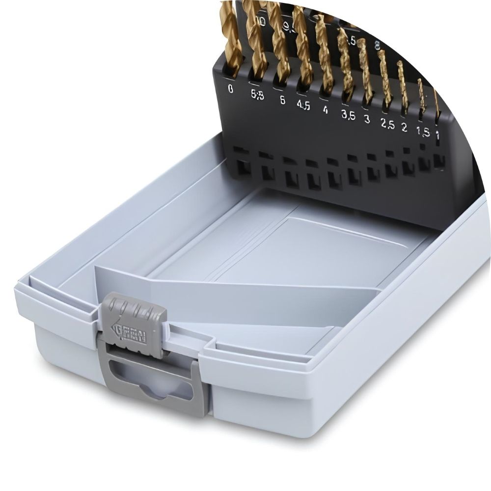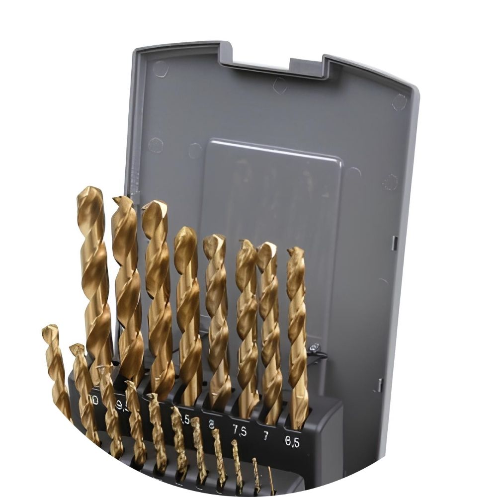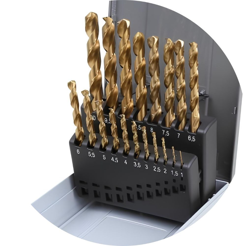 O Jogo de Brocas Cilíndricas Ref. 414 é um conjunto abrangente de brocas de alta qualidade. Ele oferece uma gama de tamanhos de 1 a 10 mm (ou 1 a 13 mm) com incrementos precisos. Fabricadas com aço de alta velocidade ou aço carbono, essas brocas proporcionam perfuração precisa e durável.