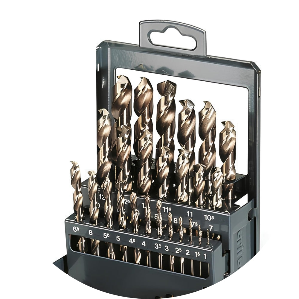 O Jogo de Brocas Cilíndricas 415/SP é uma escolha versátil para uma variedade de aplicações de perfuração. Com um conjunto de brocas que variam de 1 mm a 10 mm de diâmetro, com incrementos de 0,5 mm, oferece uma ampla gama de opções para diferentes necessidades de perfuração. Essas brocas são ideais para perfurar em diferentes materiais, proporcionando precisão e qualidade de perfuração. Acondicionadas em uma caixa conveniente, essas brocas são fáceis de armazenar e transportar, mantendo-as organizadas e prontas para uso quando necessário.
