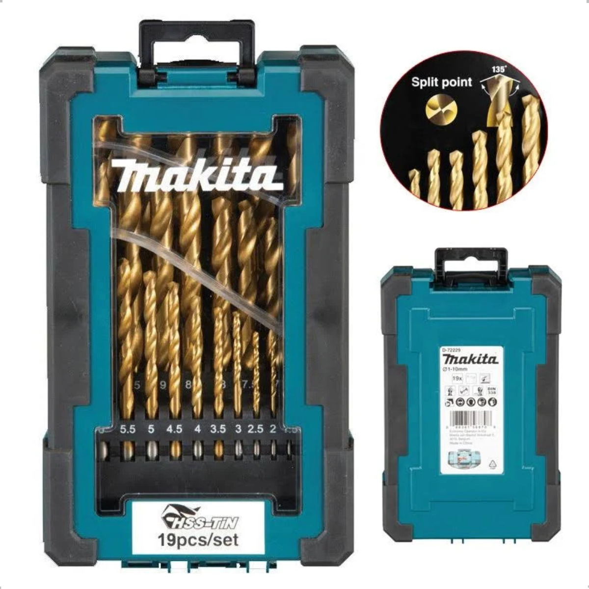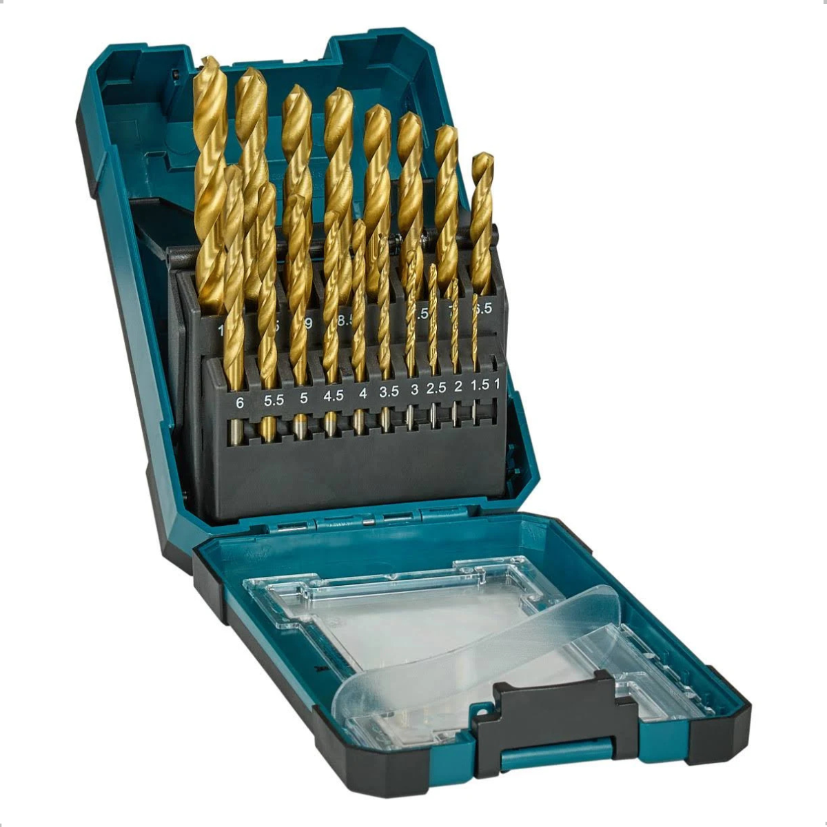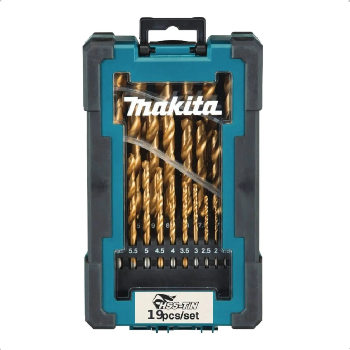 Jogo de Brocas Makita Aço Rápido HSS TIN 19 Peças - Kit com 10 Estojos - D-72229-10
