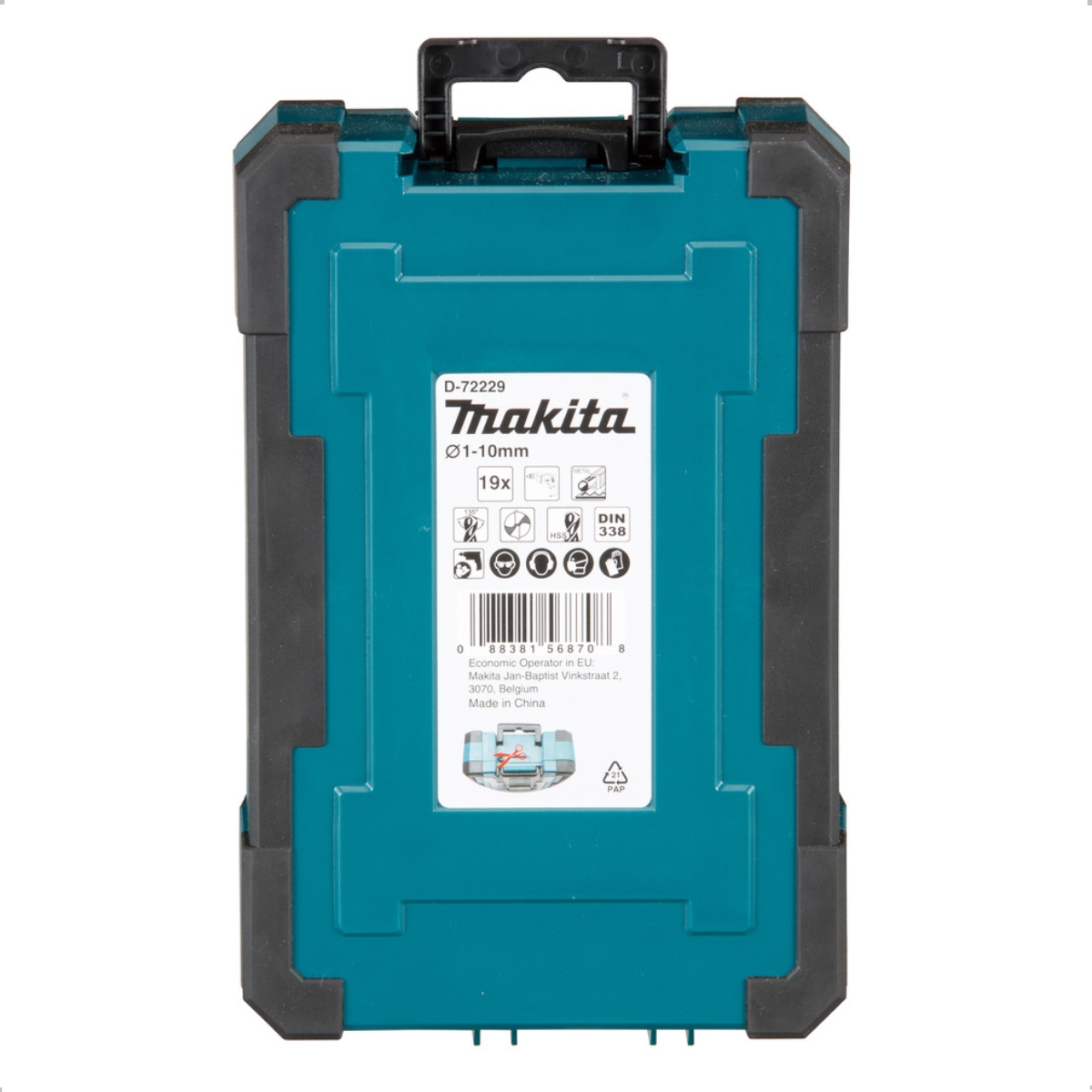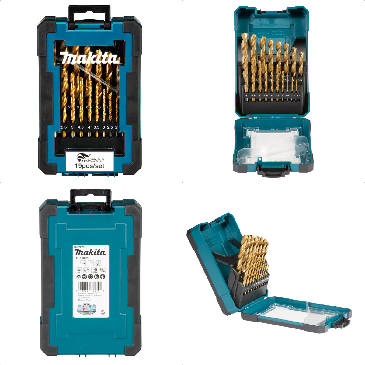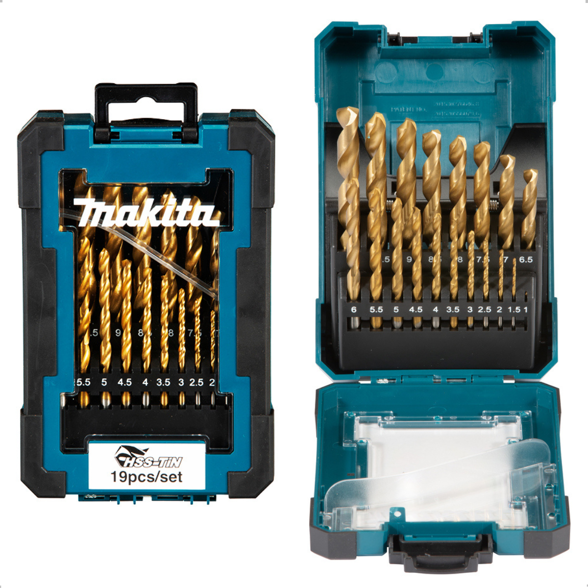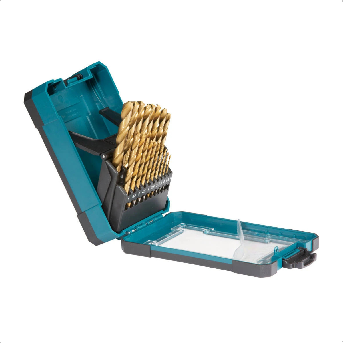 Jogo de Brocas Makita Aço Rápido HSS TIN 19 Peças - Kit com 10 Estojos - D-72229-10