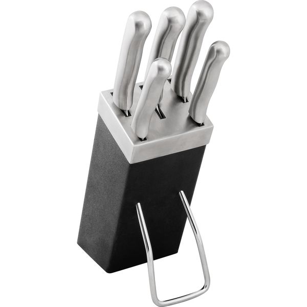 Conteúdo da embalagem 1 Jogo de facas, composto por 6 peças, sendo: 1 suporte, 1 faca com 19 cm, 1 faca com 32,5 cm, 1 faca com 33 cm, 1 faca de serra com 22 cm e 1 faca de serra com 32 cm Aplicações e dicas de uso Indicado para realizar cortes em geral Destaques e diferenciais Possui suporte que facilita a armazenagem. Facas confeccionadas em aço inox, proporcionando ótimo acabamento e longa vida útil.
