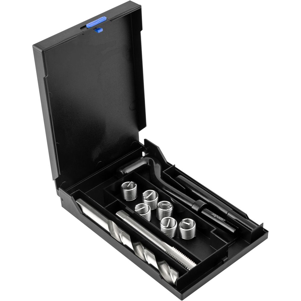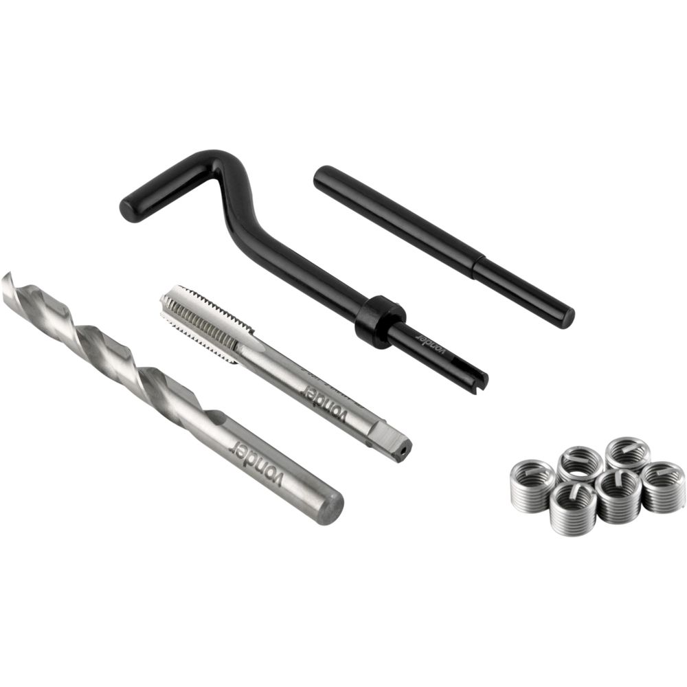 1 Jogo composto por: 1 macho para inserto M10, 1 broca 10,4 mm, 1 ferramenta para instalar inserto roscado, 1 punção e 6 insertos M10 x 10 mm