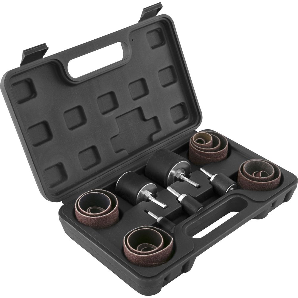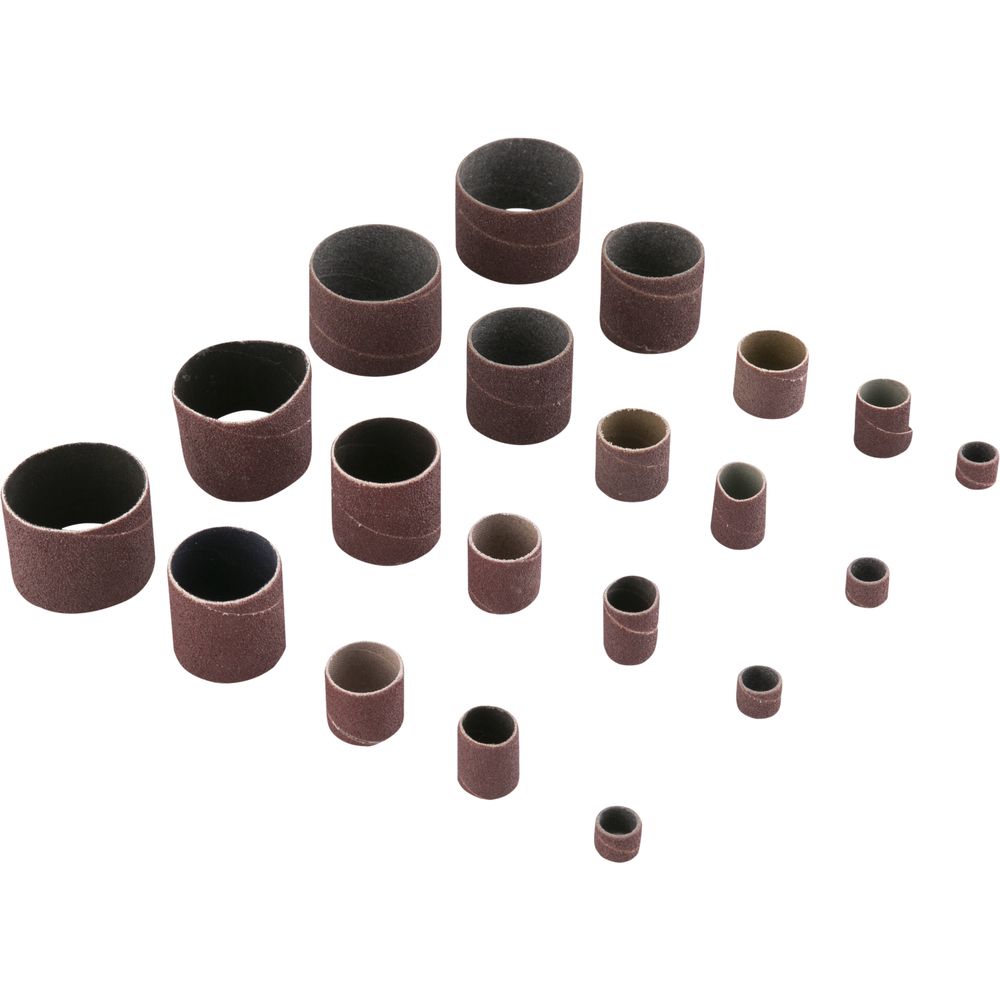 Diâmetro e largura da lixa: 13 mm x 13 mm (4 peças) / 19 mm x 25 mm (4 peças) / 25 mm x 25 mm (4 peças) / 38 mm x 38 mm (4 peças) / 50 mm x 38 mm (4 peças)