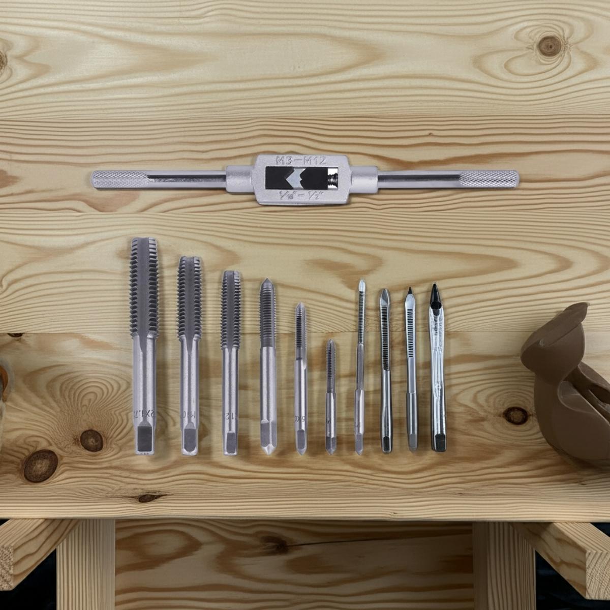 Fabricado em aço cromo-vanádio (CRV), cada macho oferece resistência ao desgaste e confiabilidade mesmo em uso contínuo. O kit inclui o vira macho, garantindo que você possa manusear os machos com facilidade e segurança, mantendo o alinhamento correto durante o processo de rosqueamento. Com diâmetros que variam de M3 a M12, este conjunto cobre uma ampla gama de aplicações, tornando-se indispensável para quem precisa de precisão e versatilidade em trabalhos industriais ou domésticos.