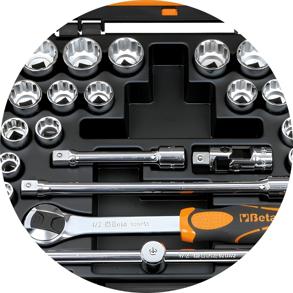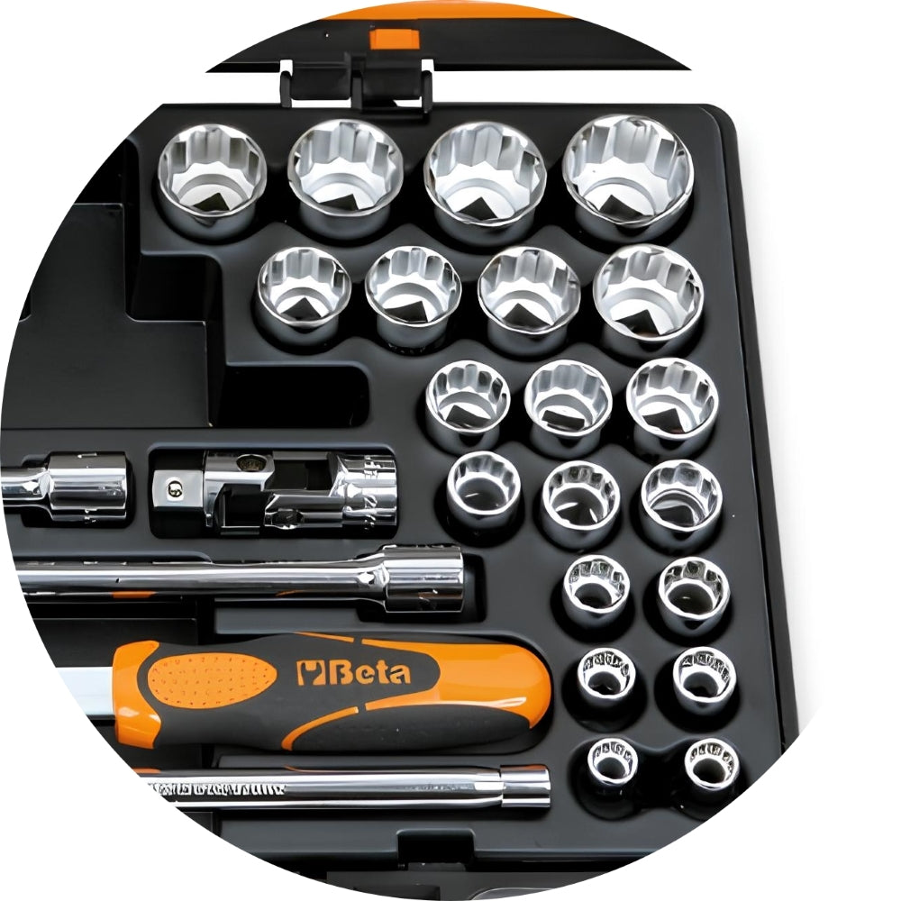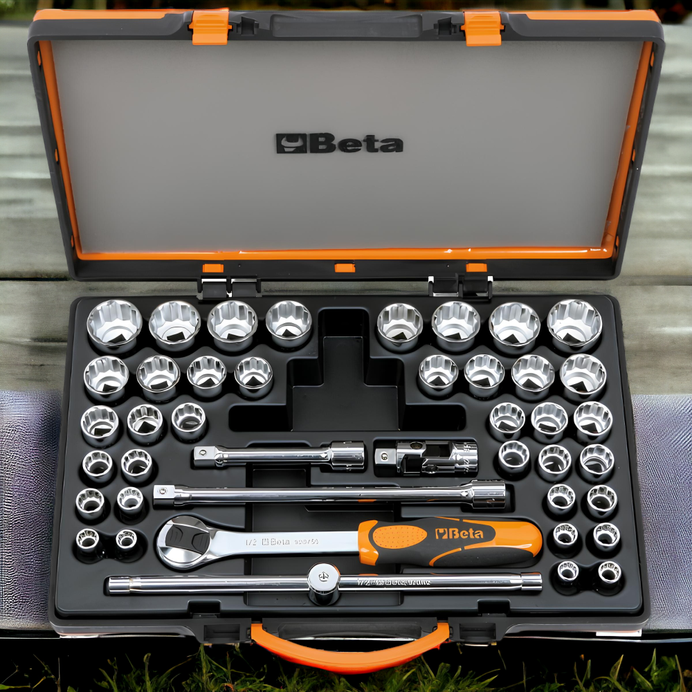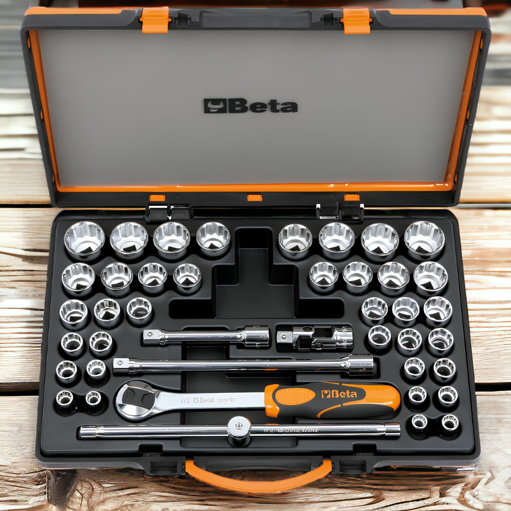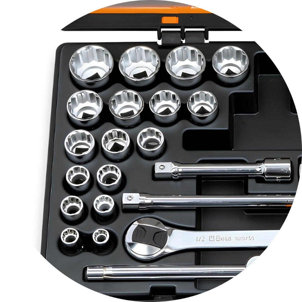 Conteúdo da embalagem: 1 Jogo de Soquetes Estriado e Acessorio Quadra de 1/2'' em Estojo Metálico 920/C37 Beta