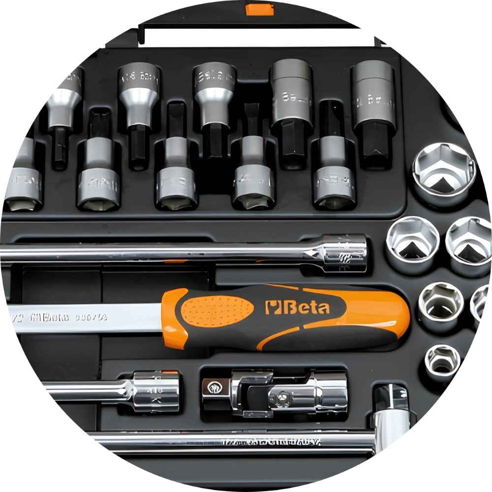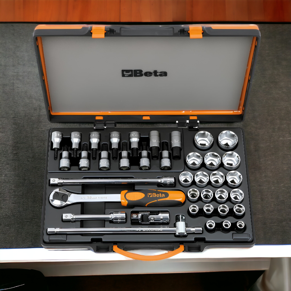 Conteúdo da embalagem: 1 Jogo de Soquetes Estriados e Acessórios Quadra de 1/2'' com Estojo Metálico 920B/C33 Beta