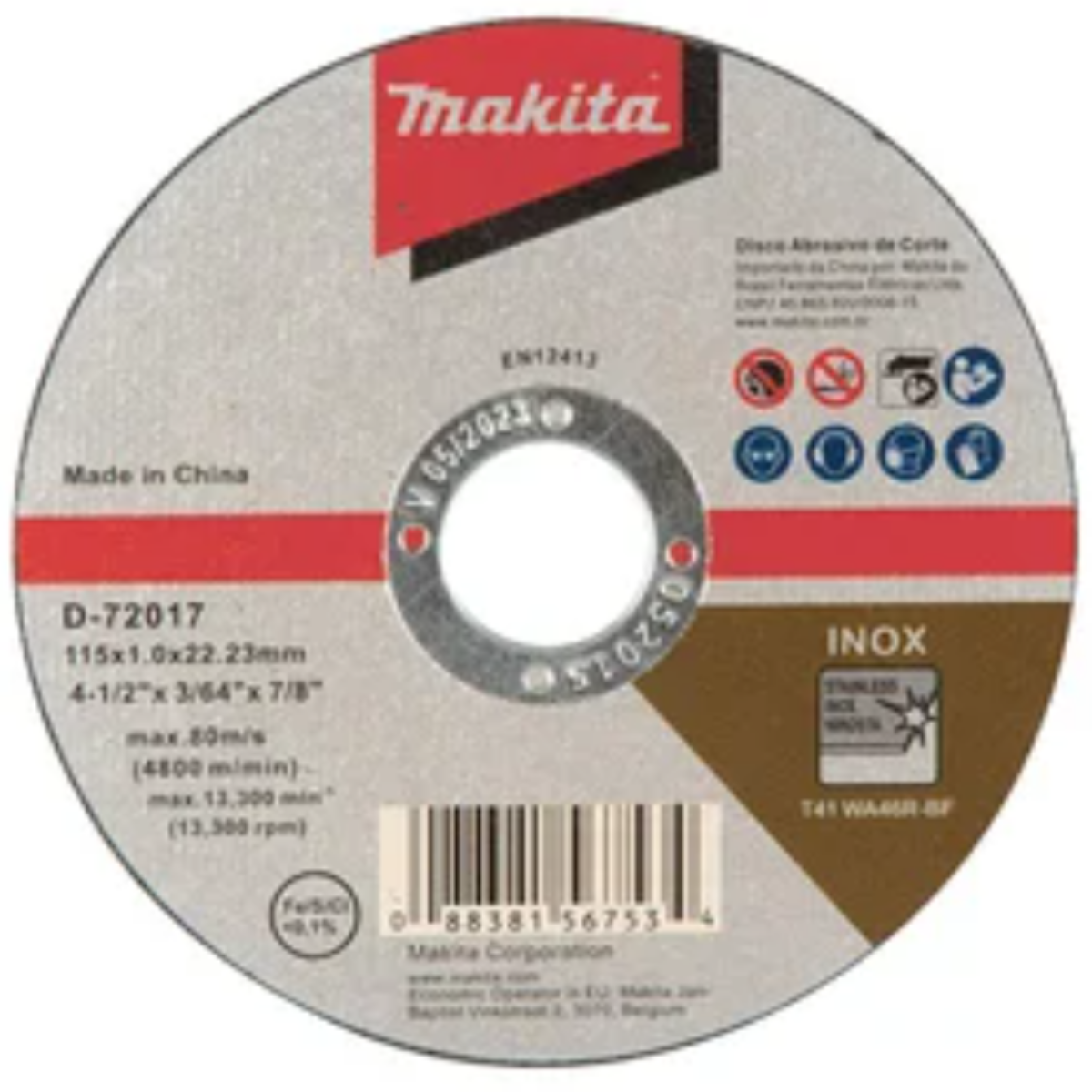 Jogo Disco de Corte Fino Makita 115 mm x 22.23 mm D-72017-10 - Embalagem com 10 Discos
