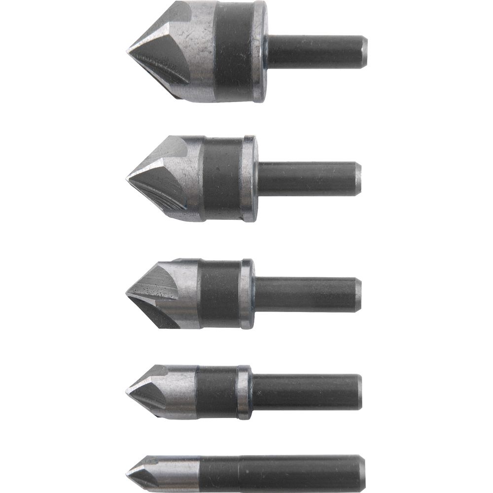 1 jogo com 5 escareadores, sendo: 1/4" - 6,4 mm, 3/8" - 9,5 mm, 1/2" - 12 mm, 5/8" - 15,9 mm e 3/4" - 19 mm