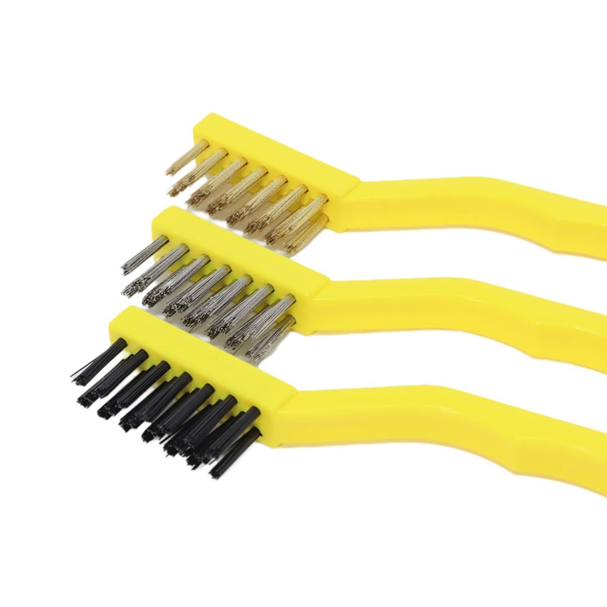 - Quantidade: 3 peças (1 escova aço inox, 1 escova latão, 1 escova nylon)