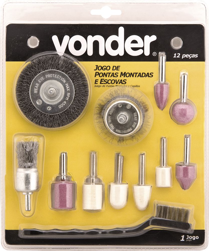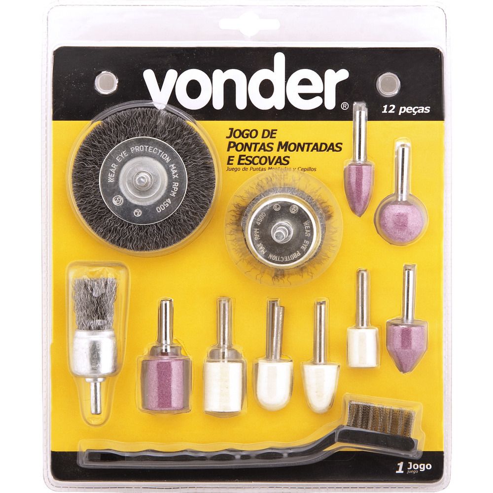 Conteúdo da embalagem Jogo com 12 peças sendo: 1 miniescova manual com cabo plástico, 1 escova tipo pincel 1" haste 6 mm, 1 escova tipo copo 2" haste 6 mm, 1 escova circular 3" x 3/8" haste 6 mm, 4 pontas montadas haste 6 mm e 4 pontas montadas com feltro haste 6 mm Aplicações e dicas de uso Indicado para retificar, desbastar e limpar pequenas peças. Utilizado em furadeiras. Destaques e diferenciais Facilita o trabalho em locais de difícil acesso