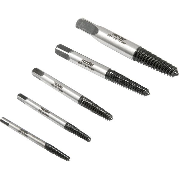 Indicado para retirar parafusos quebrados em peças ou máquinas. Utilizado com o vira-macho (não acompanha). Para parafusos de 1/8" a 3/4"