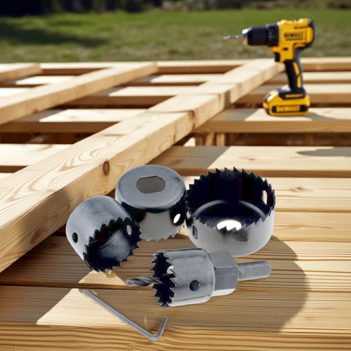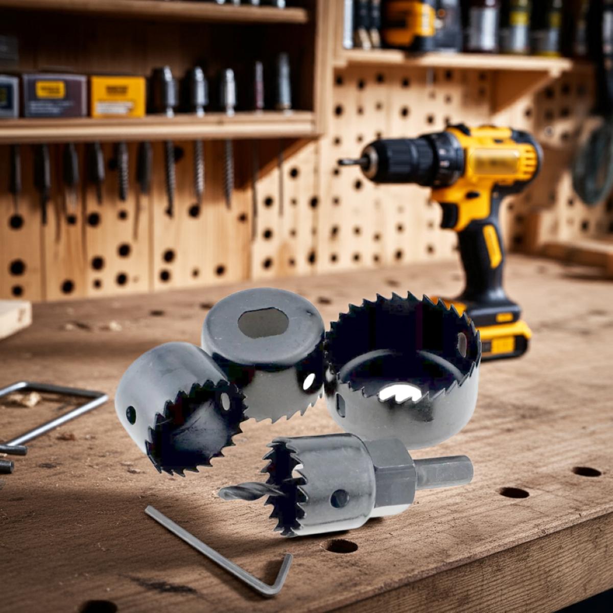 O kit inclui serras copo nos diâmetros 32 mm, 38 mm, 51 mm e 54 mm, além de mandril com broca piloto e chave Allen sextavada para montagem, oferecendo praticidade, organização e facilidade de uso. Ideal para profissionais de carpintaria, marcenaria, construção civil e projetos DIY que necessitam de cortes limpos e precisos. Compacto e versátil, este conjunto de serras copo garante eficiência em cada corte, facilitando seu trabalho e proporcionando acabamento profissional.