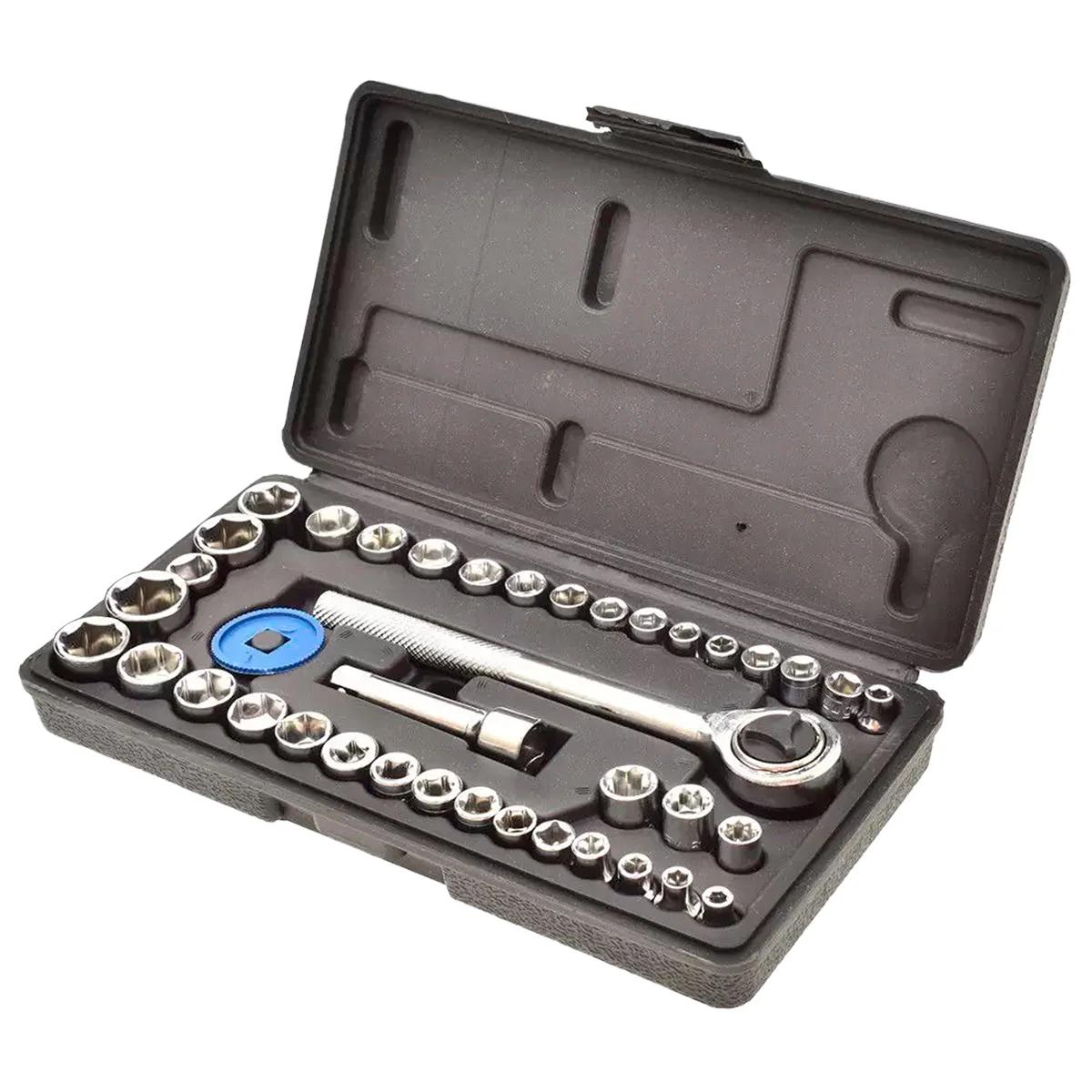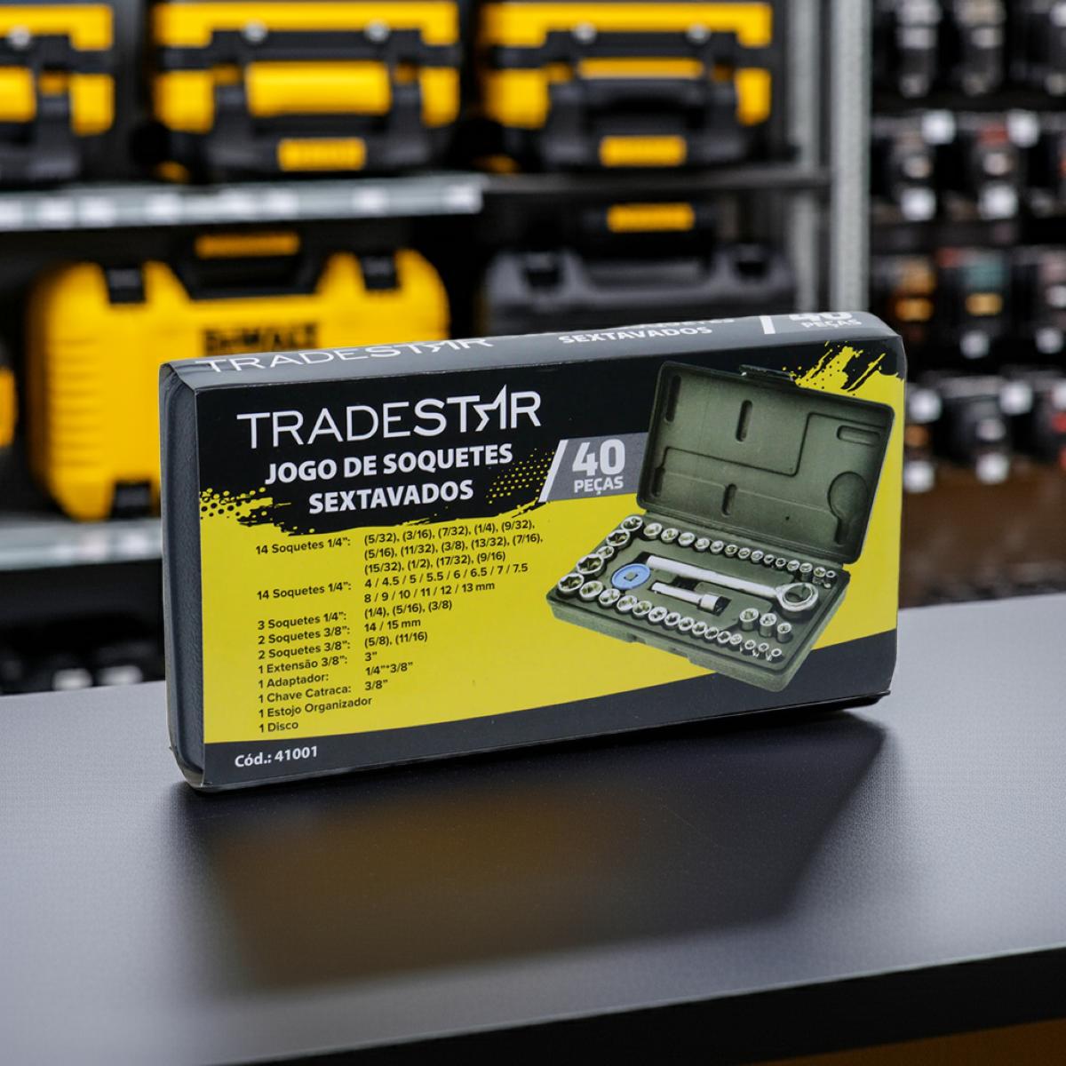 Jogo de Soquetes Sextavados Tradestar 1/4 até 3/8" com Chave Catraca 40 peças