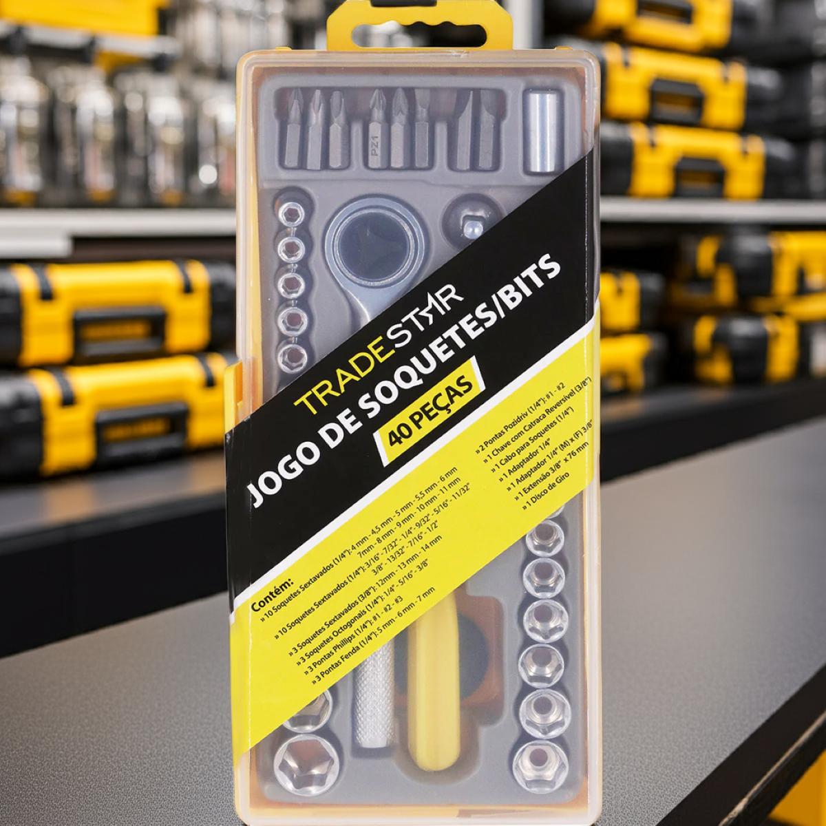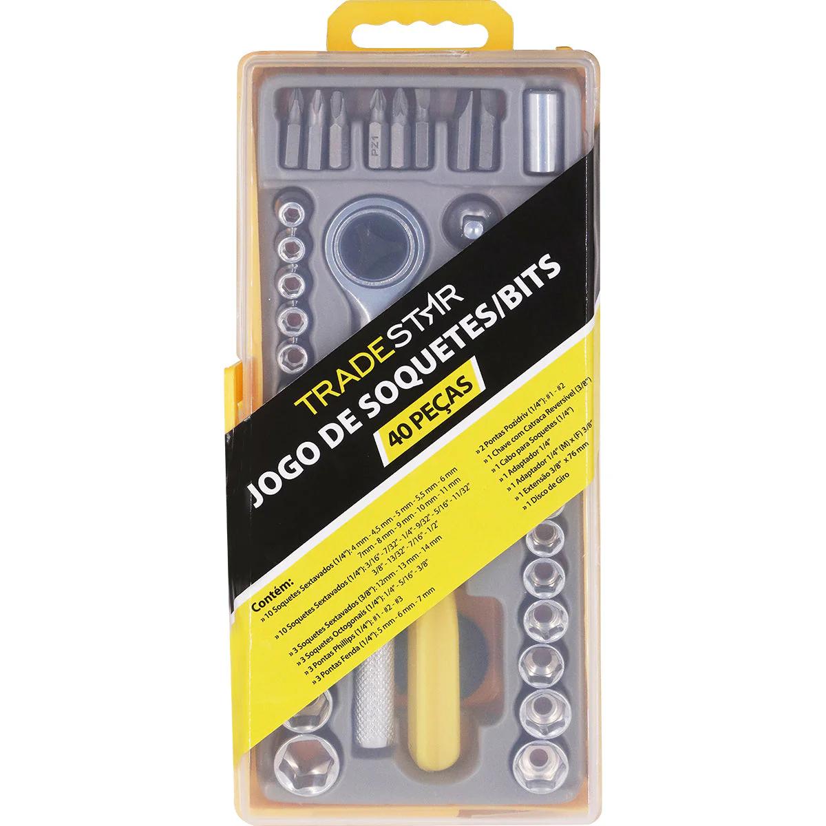Jogo Soquetes Bits Tradestar Sextavados Completo 40 Peças