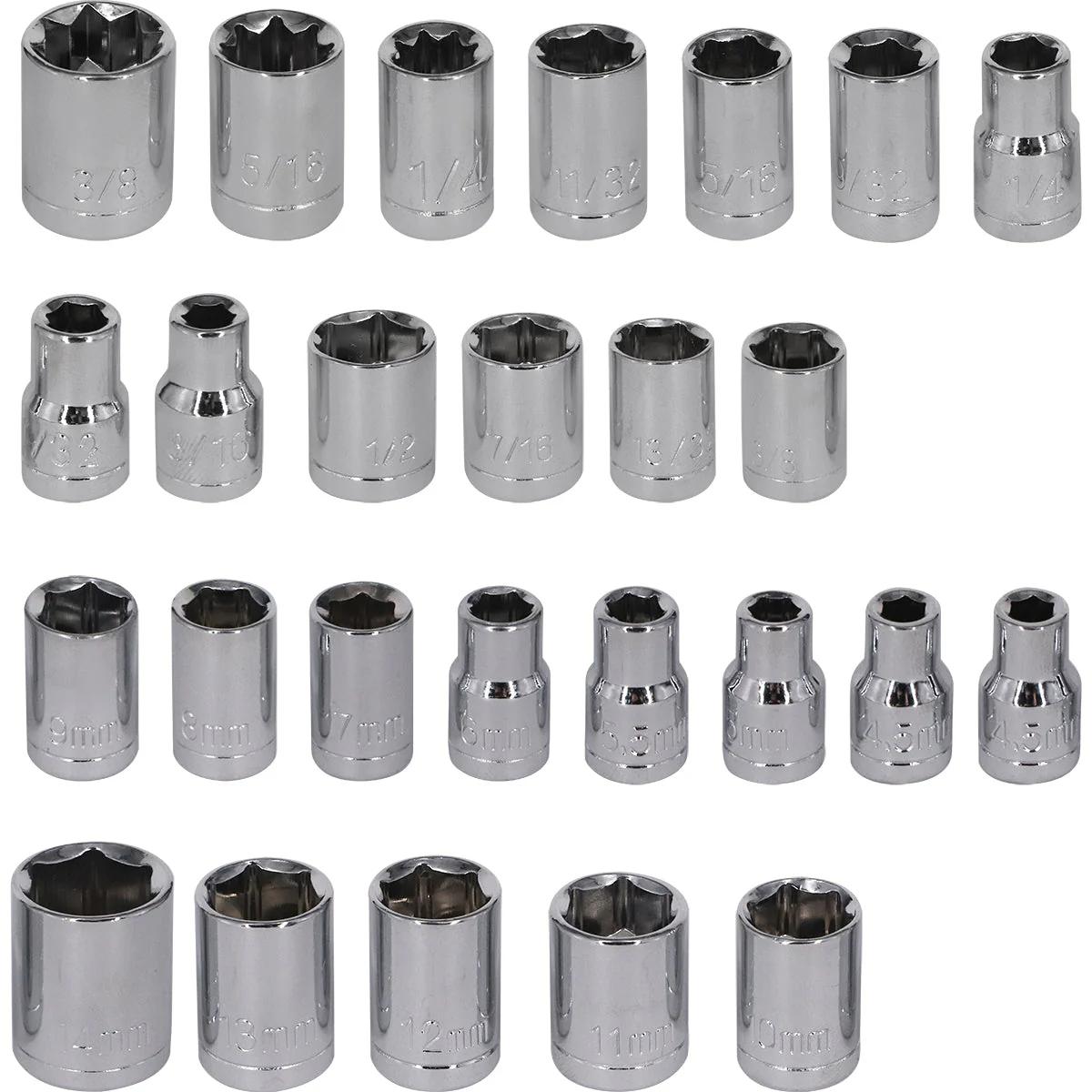 - 10 Soquetes Sextavado: 3/16 - 7/32 - 1/4' - 9/32 - 5/16 - 11/32 - 3/8 - 13/32 - 7/16 - 1/2'