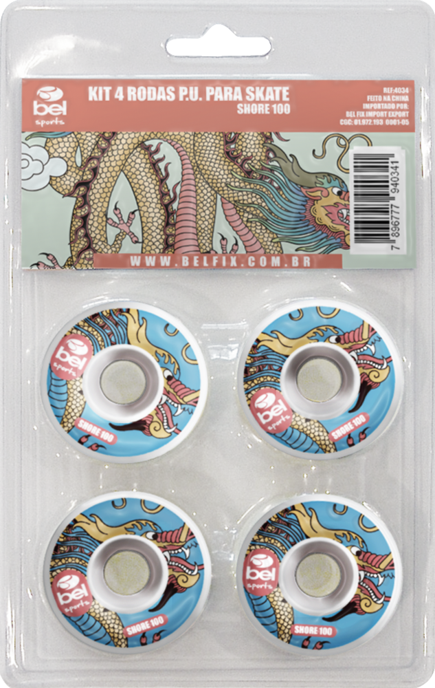 Kit rodas para skate 51x31mm em PU - Bel Sports