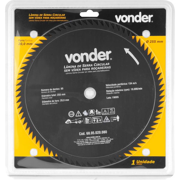 Lâmina Circular para Roçadeira sem Vídea 255x20,0x80 Vonder