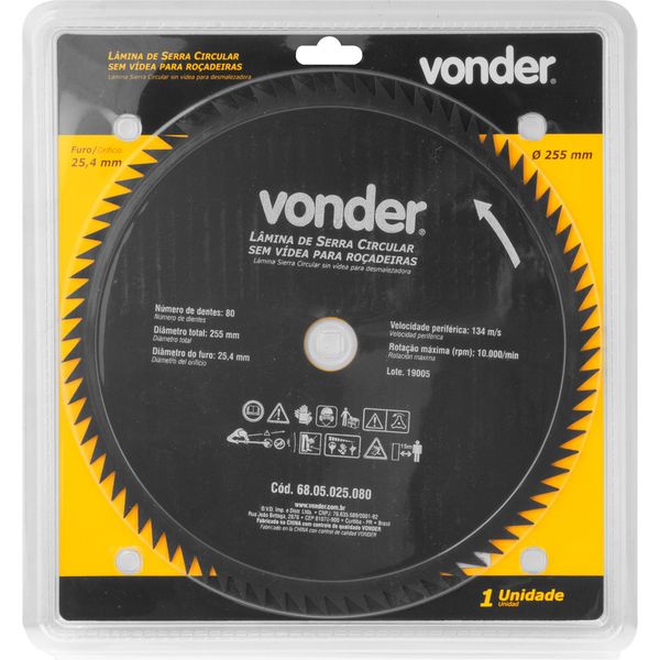 Lâmina Circular para Roçadeira sem Videa 255x25,4x80 Vonder