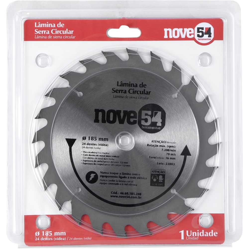 Conteúdo da embalagem: 1 Lâmina de serra circular vídea 185mm 24 dentes Nove54