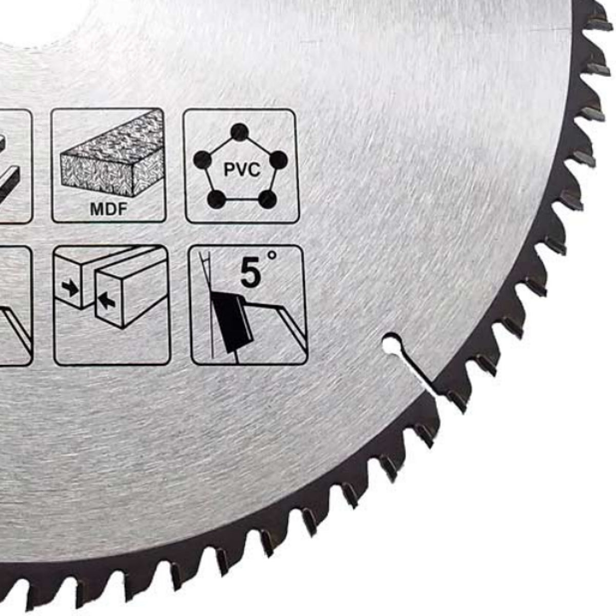 A geometria TCG é especialmente indicada para cortes em perfis de alumínio, MDF revestido, compensados e até plásticos duros, pois alterna dentes retos com dentes trapezoidais, garantindo avanço suave e redução de vibração. O ângulo de ataque de 5° contribui para um corte progressivo e estável, minimizando a geração de calor e prolongando a vida útil tanto do disco quanto do motor da máquina. Para o profissional, isso se traduz em menos paradas, menos retrabalho e mais produtividade no final do dia.
