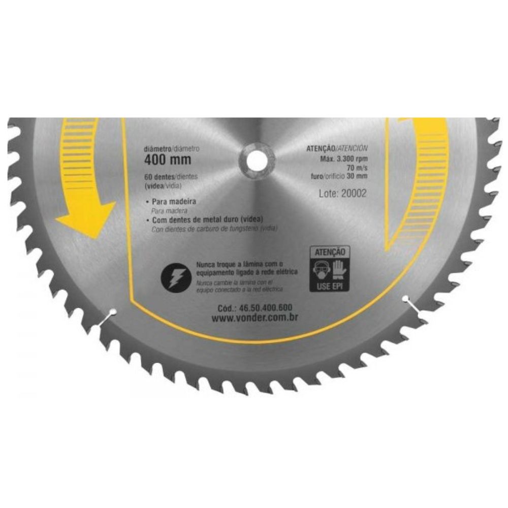 Lâmina Serra Circular Vídea 400x30x4,5mm 60D 3300 Rpm Vonder
