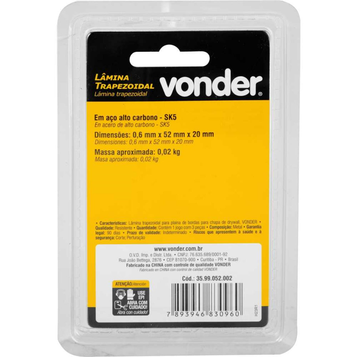 Lâmina Trapezoidal para Plaina Borda Vonder com 3 Peças - Vonder Oficial