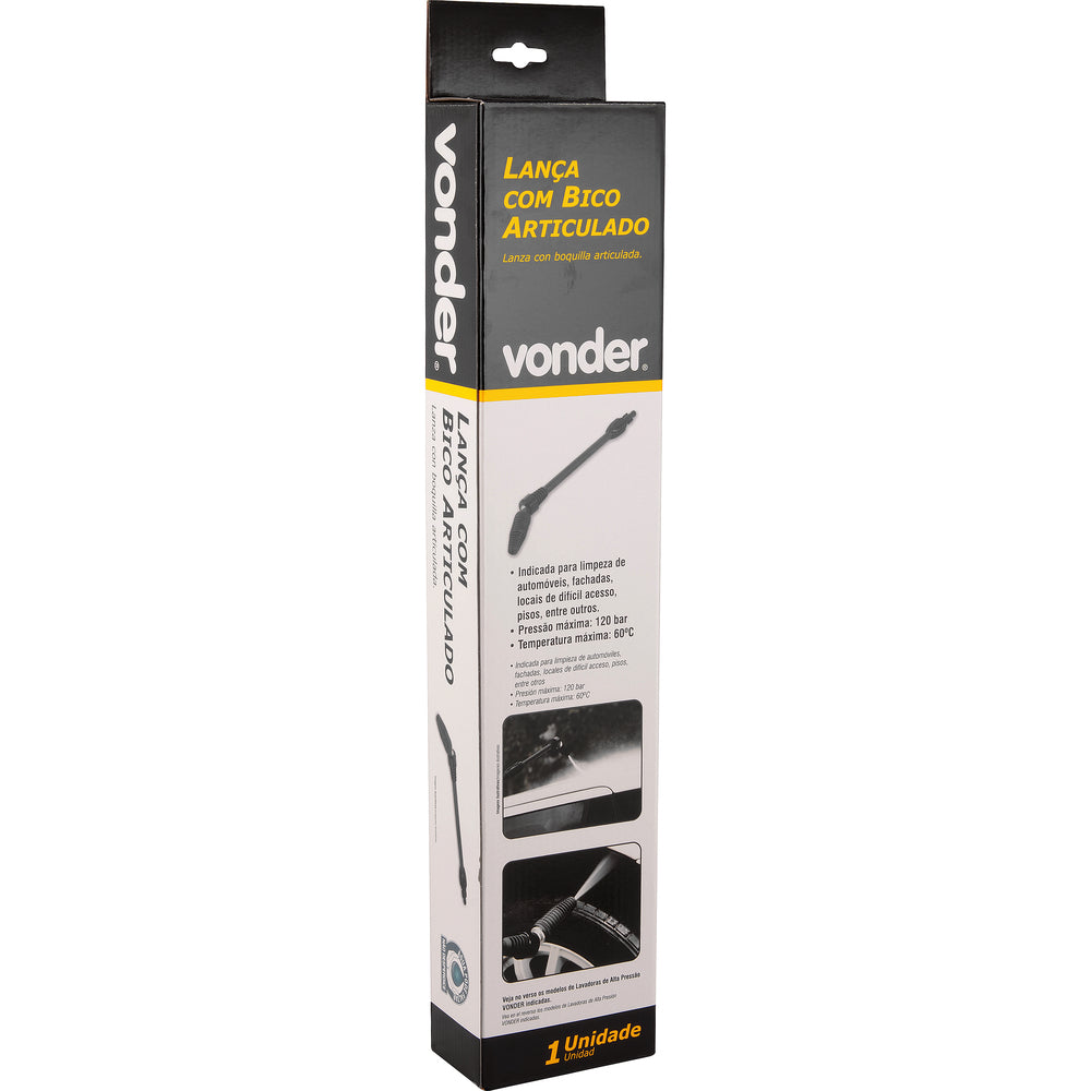 Indicada para limpezas de automóveis, pisos, fachadas, locais de difícil acesso, entre outros. Uso nas Lavadoras de Alta Pressão Elétricas VONDER, modelos: LAV 1200, LAV 1400, LAV 1800, LAV 1800I e LAV 2000ICaracterísticas Técnicas: