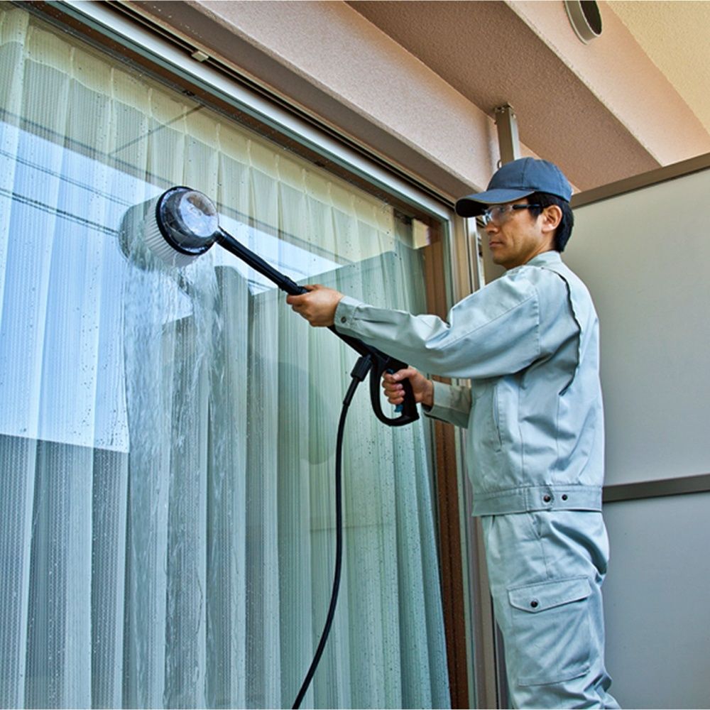 Limpeza de áreas ao redor de jardins residenciais, pedras ornamentais, cercas e móveis de jardim.