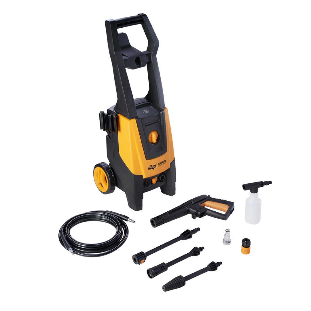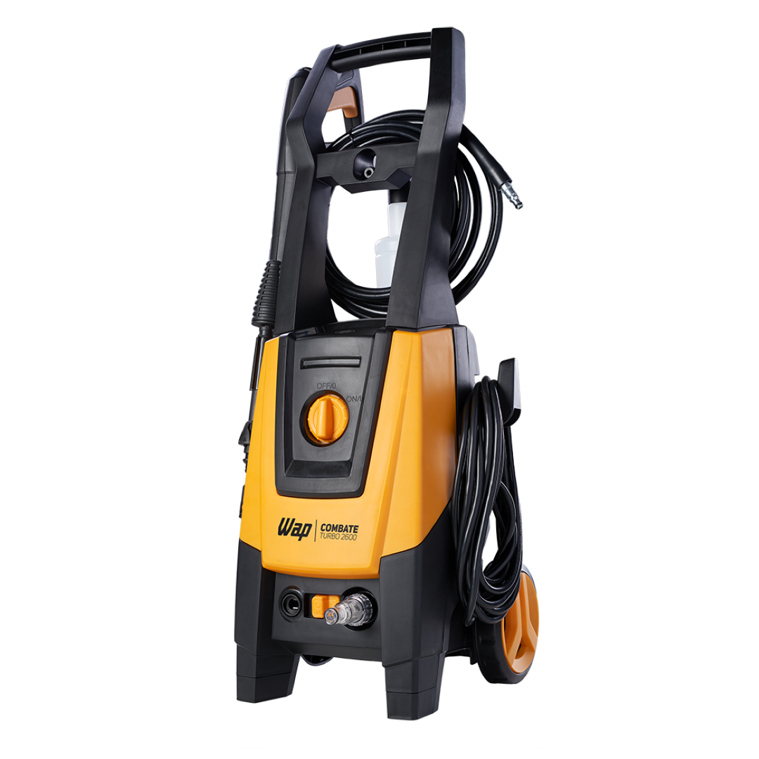 A lavadora de alta pressão WAP Combate Turbo 2600 é a melhor opção para limpar sujeiras pesadas e profundas com rapidez e agilidade, economizando tempo e até 80% de água se comparada à mangueira comum. Com motor de indução, potência de 1700W e pressão máxima de 2100 PSI é o equipamento perfeito para a remoção de níveis incrustados de sujeira nos mais diversos tipos de pisos e superfícies.