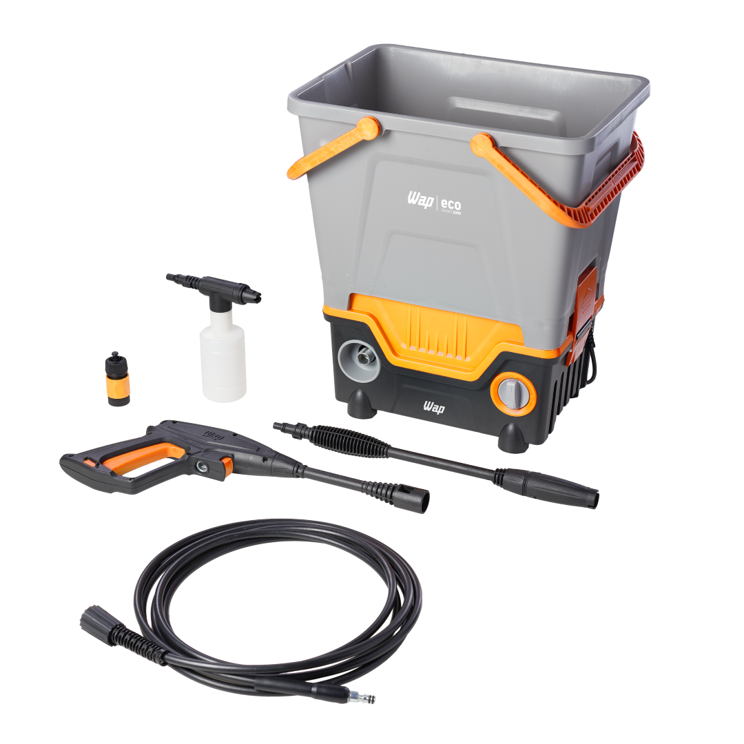 Com 1750 W de potência a WAP Eco Smart 2200 é uma lavadora robusta e perfeita para uma limpeza eficiente. Com pressão máxima de 1700 PSI é o equipamento perfeito para a remoção de níveis incrustados de sujeira em superfícies como paredes, motos, carros, calçadas, bicicletas, jardins e muito mais.