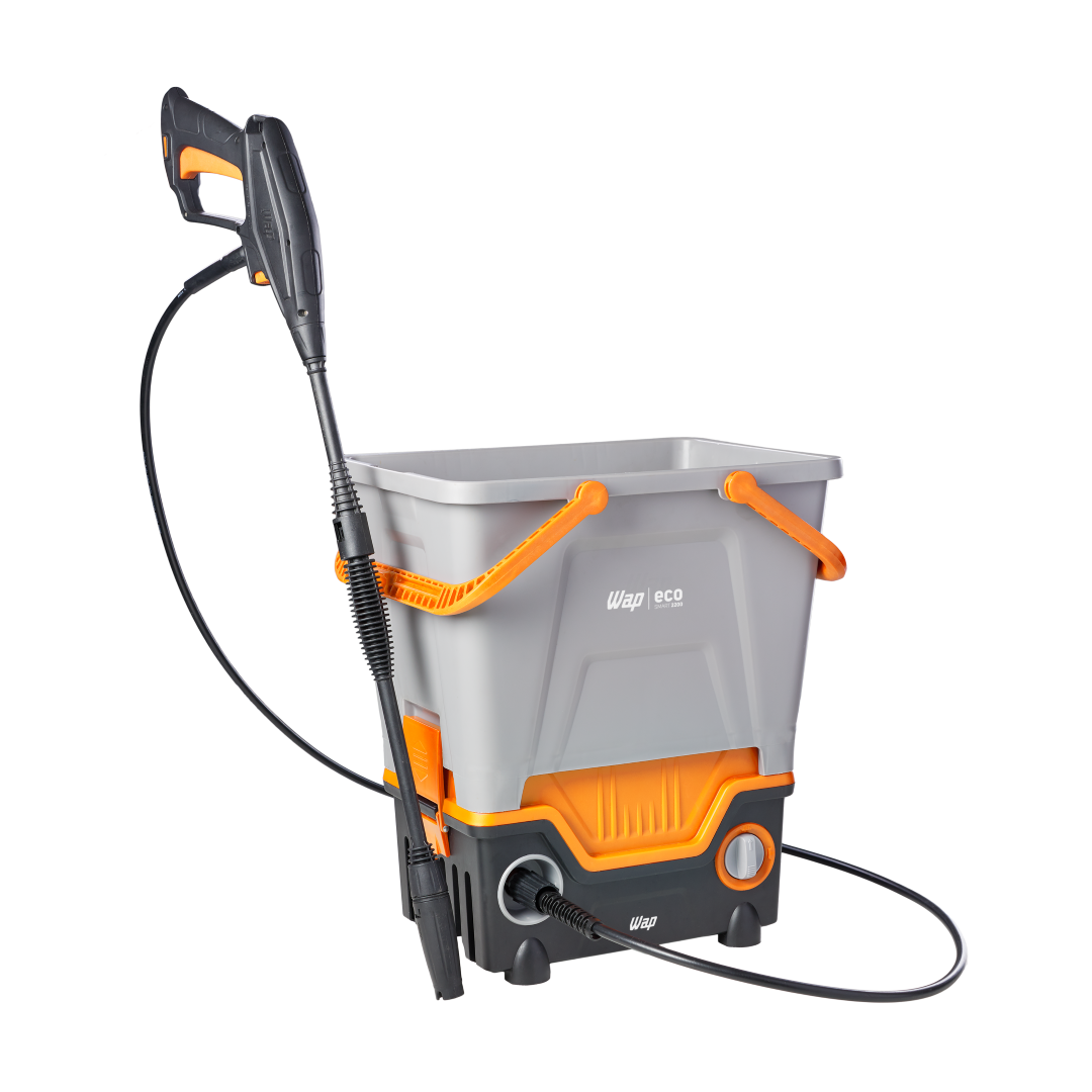 Conheça a solução mais eficiente, econômica e sustentável para sua limpeza. A WAP Eco Smart 2200 é a lavadora de alta pressão que REUTILIZA ÁGUA, enquanto você cuida da sua casa e do meio ambiente. Possui exclusivo reservatório de 23 litros que possibilita captar água da chuva, banho ou máquina de lavar para limpar todos os ambientes. Versátil, a WAP Eco Smart 2200 também pode ser utilizada de forma tradicional conectada a uma mangueira de jardim.