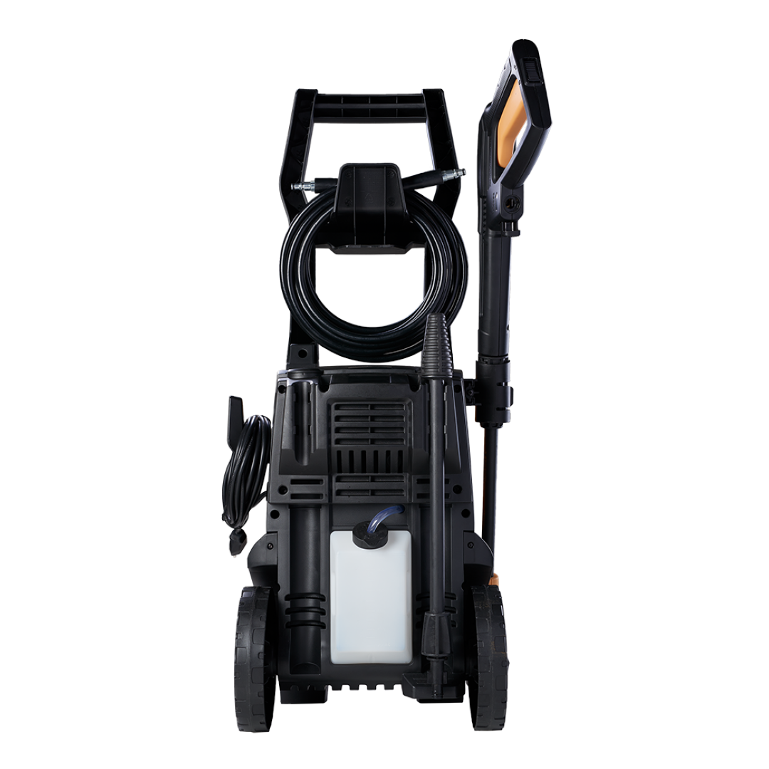 Equipada com alça e rodas que facilitam o transporte, a WAP Extreme Turbo 2800 conta com cabo elétrico de 5 metros e mangueira de alta pressão com trama de aço de 5 metros que permitem cobrir uma grande área sem precisar locomover a máquina. Além disso, vem com trava de segurança da pistola, bico regulável (leque ou concentrado), aplicador de detergente embutido com controle na lança e sistema stop total, que corta o fluxo de água e a energia do motor ao soltar o gatilho, poupando energia e aumentando a vida útil do motor. A lavadora de alta pressão WAP Extreme Turbo 2800 conta também com pistões em aço inox que, junto com o motor de indução, conferem mais durabilidade para o produto.