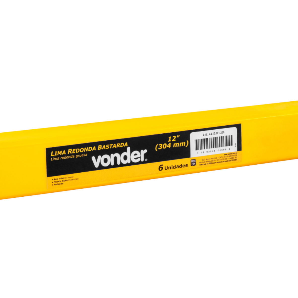 Comprimento da lima: 12" - 304 mm Tipo do cabo da lima: Sem cabo Perfil da lima: Redonda Tipo de picado da lima: Picado duplo - BASTARDA