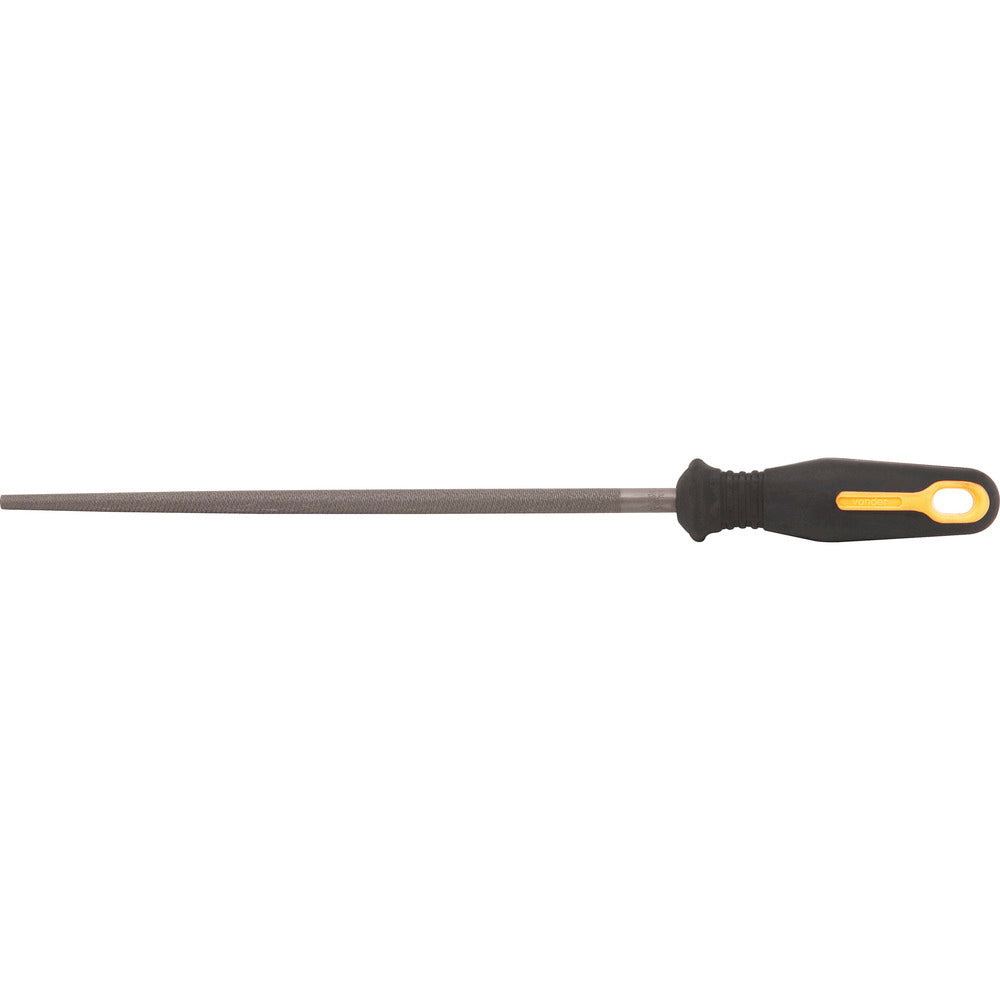 Comprimento da lima: 10" - 254 mm Tipo do cabo da lima: Cabo plástico revestido com borracha Perfil da lima: Redonda Tipo de picado da lima: Picado duplo - MURÇA