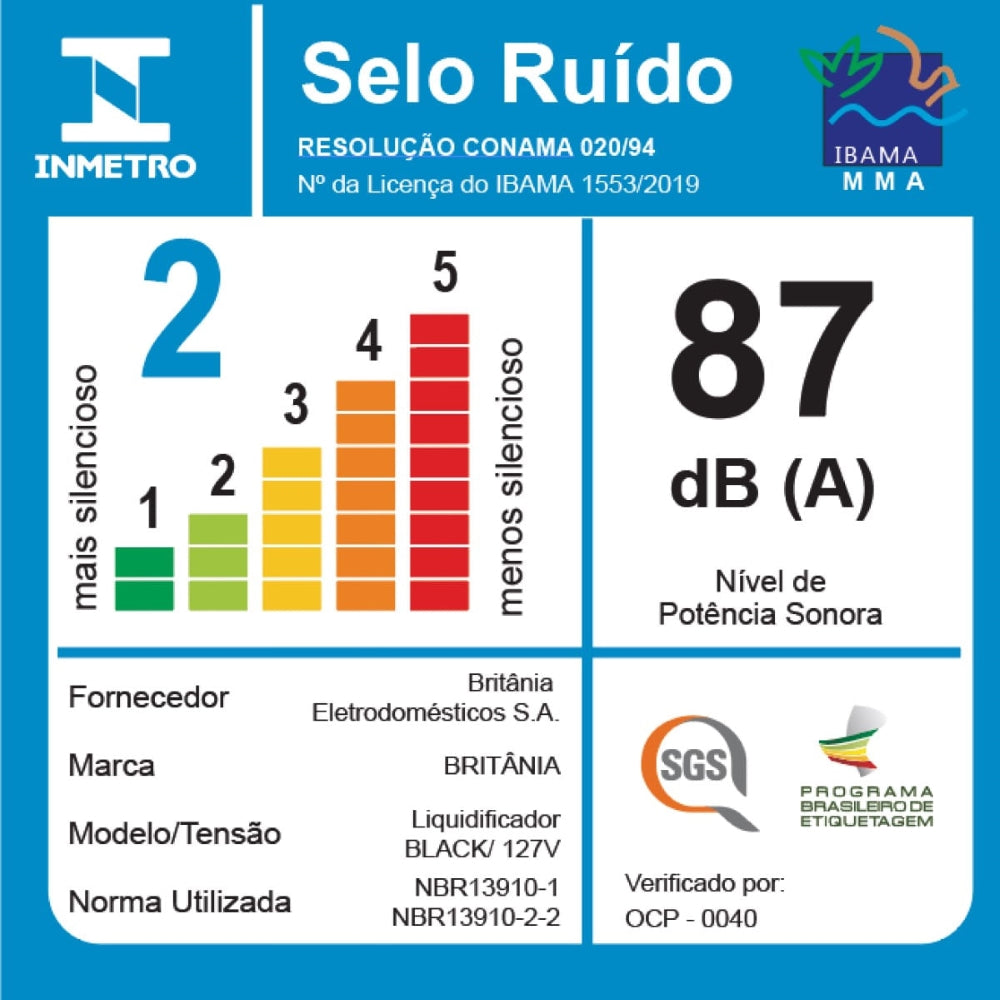 Conteúdo da embalagem: 1 Liquidificador Black 600W Britânia Preto 2,1L Com Lâminas em Aço Inox 127V